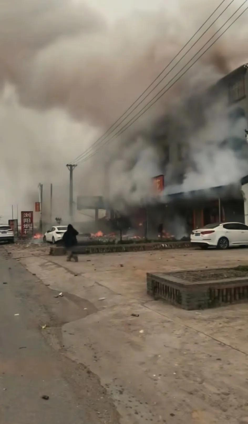 湖北襄阳宜城郑集镇烟花店,隔壁跑出来的人真的是惊魂未定,也是很幸运的。出事的地点