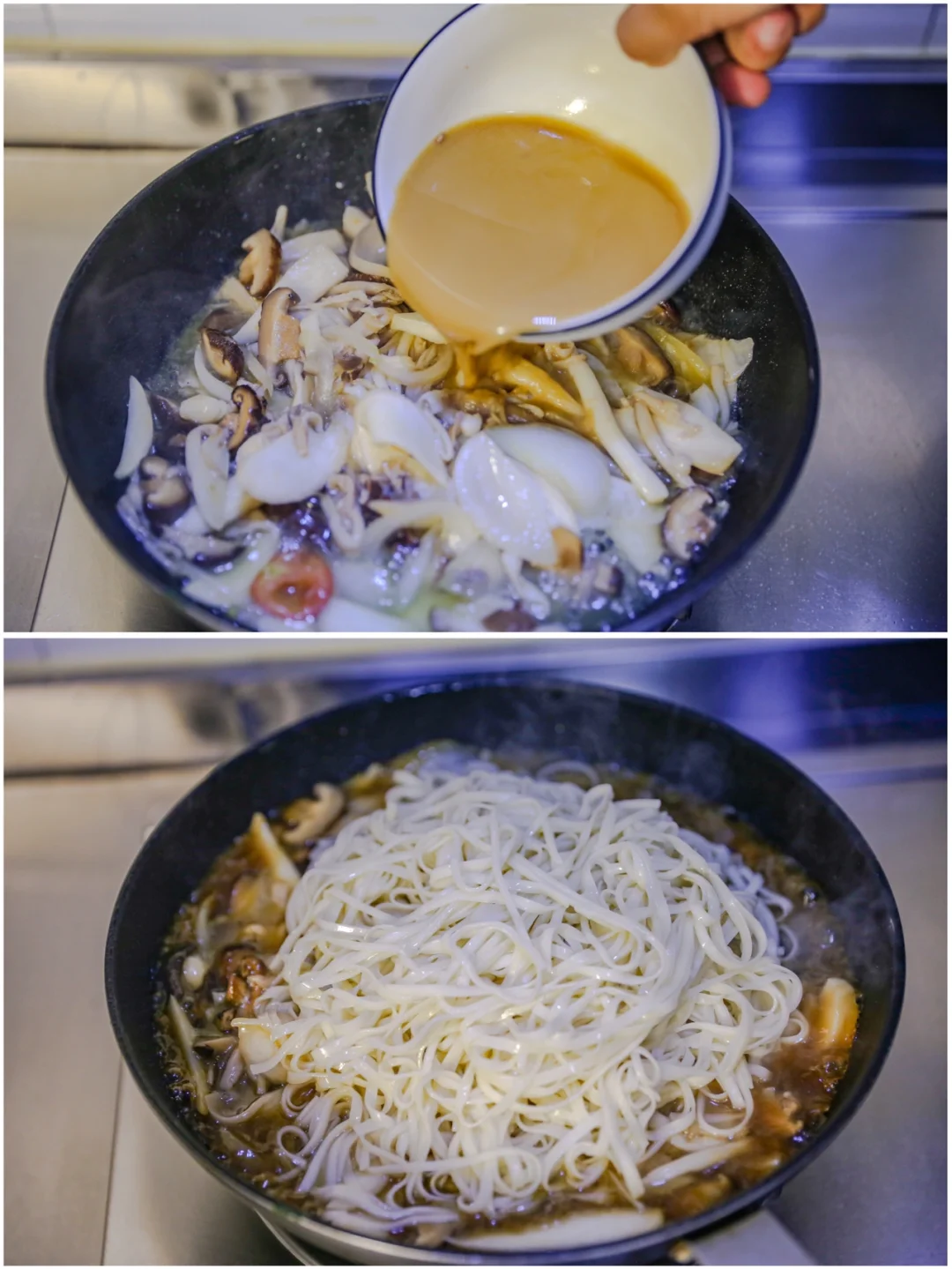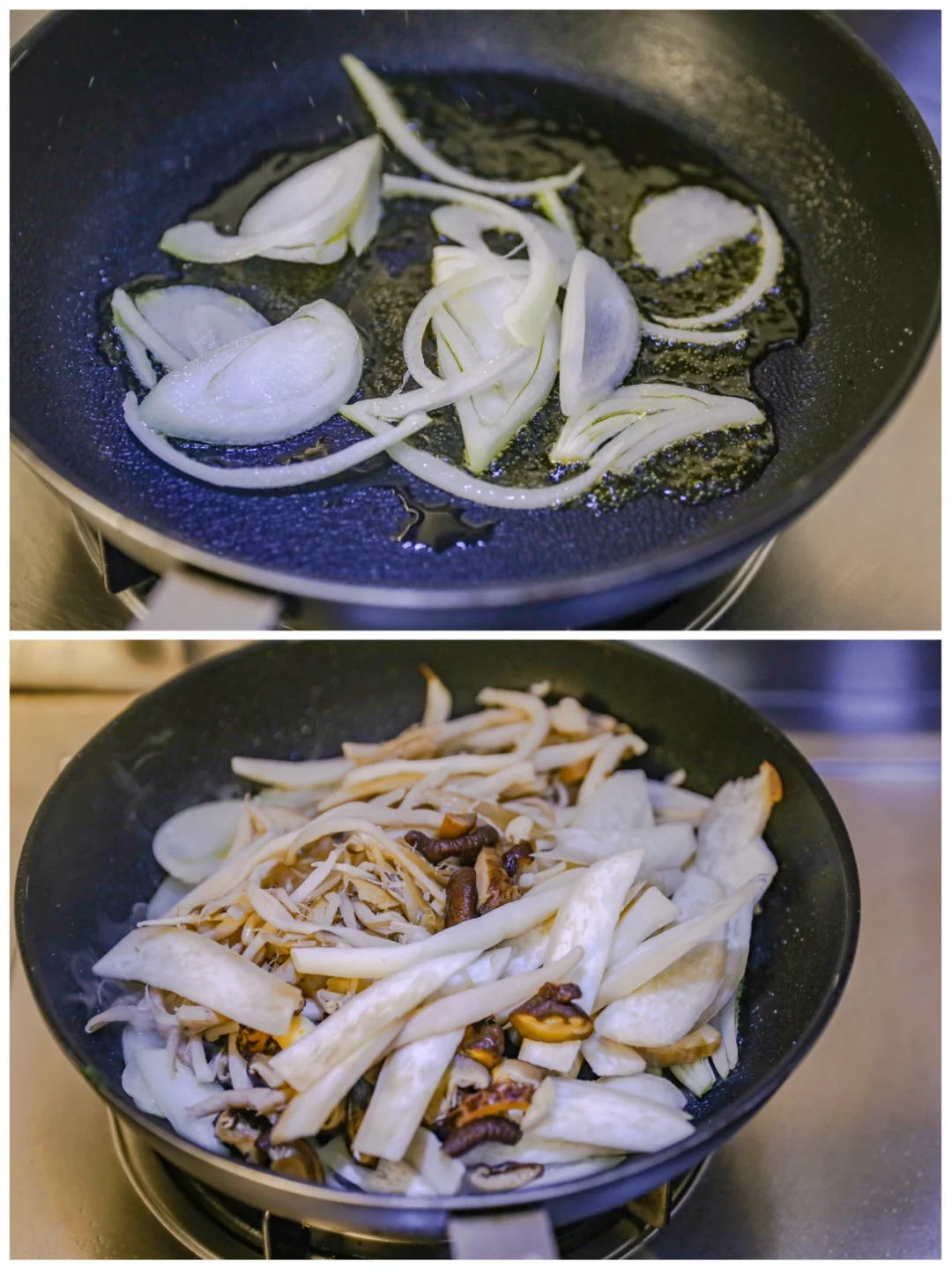 [辣椒R]2.杏鲍菇切薄片,洋葱切片,干香菇切片。