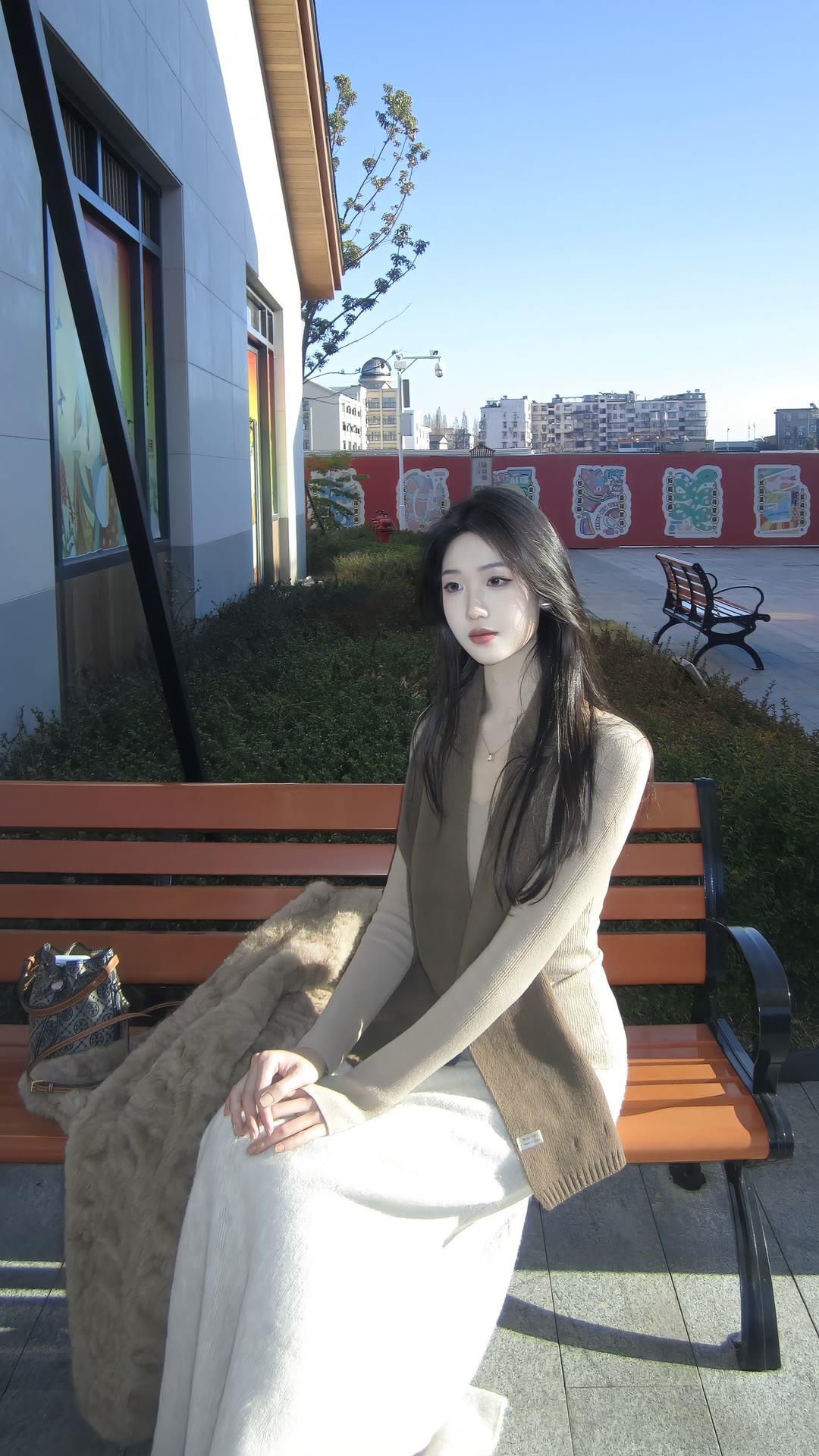 刘涛的中年穿搭太高级了!刘涛这组街拍真的美到我了!棕色人字纹大衣+深灰围巾