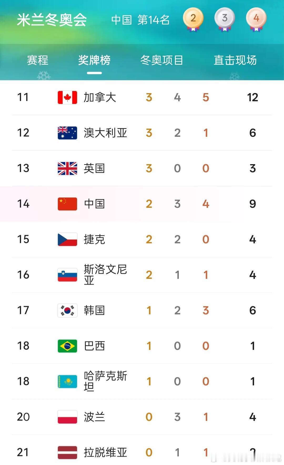 中国奖牌榜反超韩国中国今晚大丰收!两金一银,中国运动员是最棒的!期待短道速滑能有个好结果!