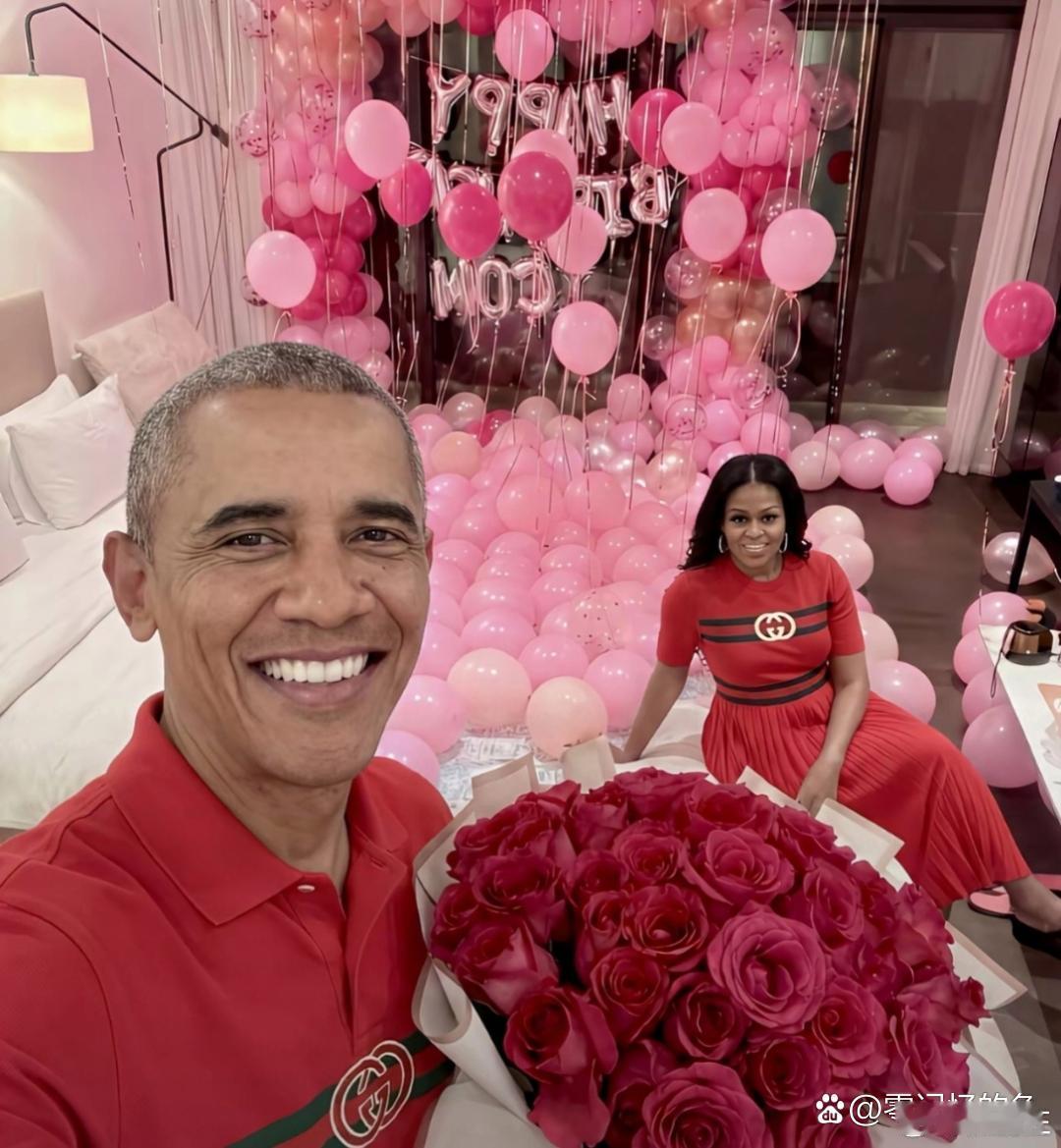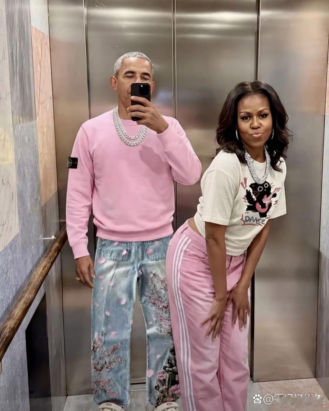 奥巴马和米歇尔穿情侣装。