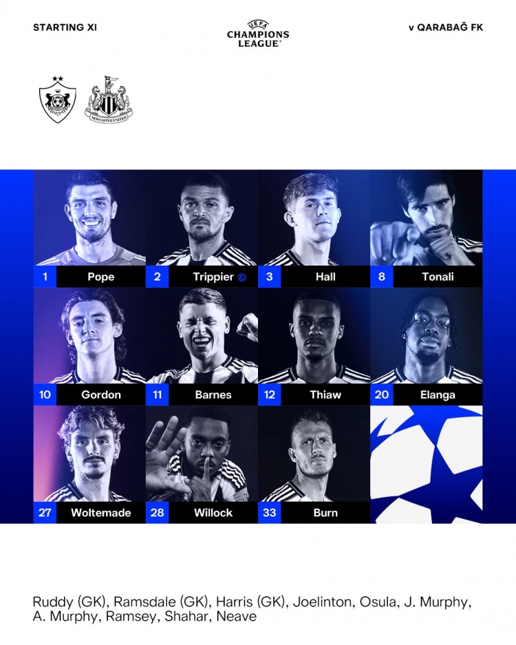 纽卡替补:鲁迪、拉姆斯代尔、哈里斯、乔林顿、奥苏拉、J·墨菲、A·墨菲、拉姆塞、沙尔、尼维
