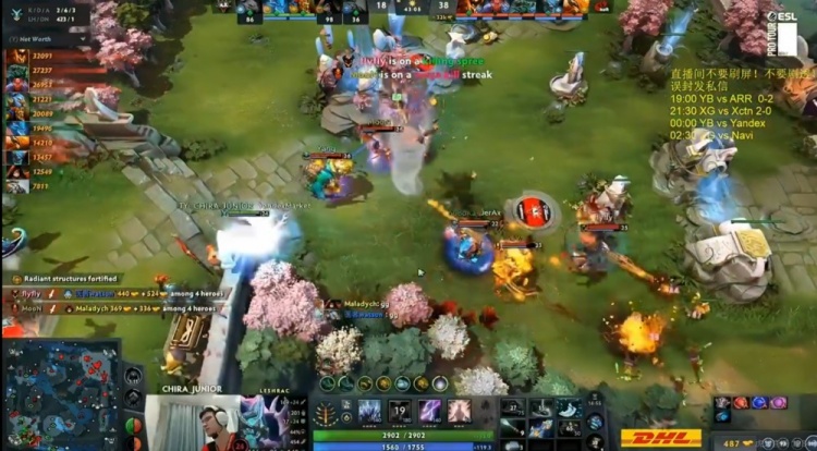 22分钟中路团战,YB动用三大哥大招强杀CHIRA_JUNIOR拉席克,残局MooN女王冲锋用命留人,天命的凤凰激光成功拉扯,YB强杀watson凯打出一波2换4!再次拿回局势主动权!