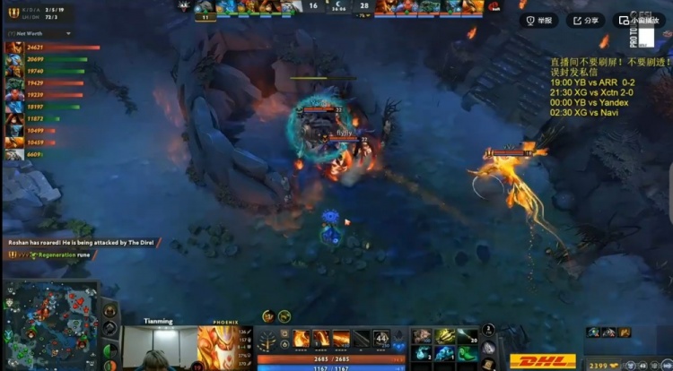 11分钟下路团战天命的凤凰吃到海民一拳被秒,Yang潮汐拖时间结果没踩出大招就先倒,支援到位的flyfly影魔吃了沉默摇不出大!Yandex还了一波0换3,将局势打回了!