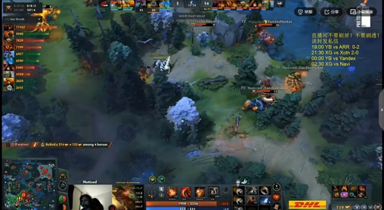 天辉Yandex:Noticed蝙蝠骑士、Saksa巨牙海民、Maladych术士、watson凯、CHIRA_JUNIOR拉席克