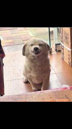 流浪狗小心翼翼走进店里,没有乱叫,没有乱撞,只是仰着头,嘴角微微咧开,像在对着老