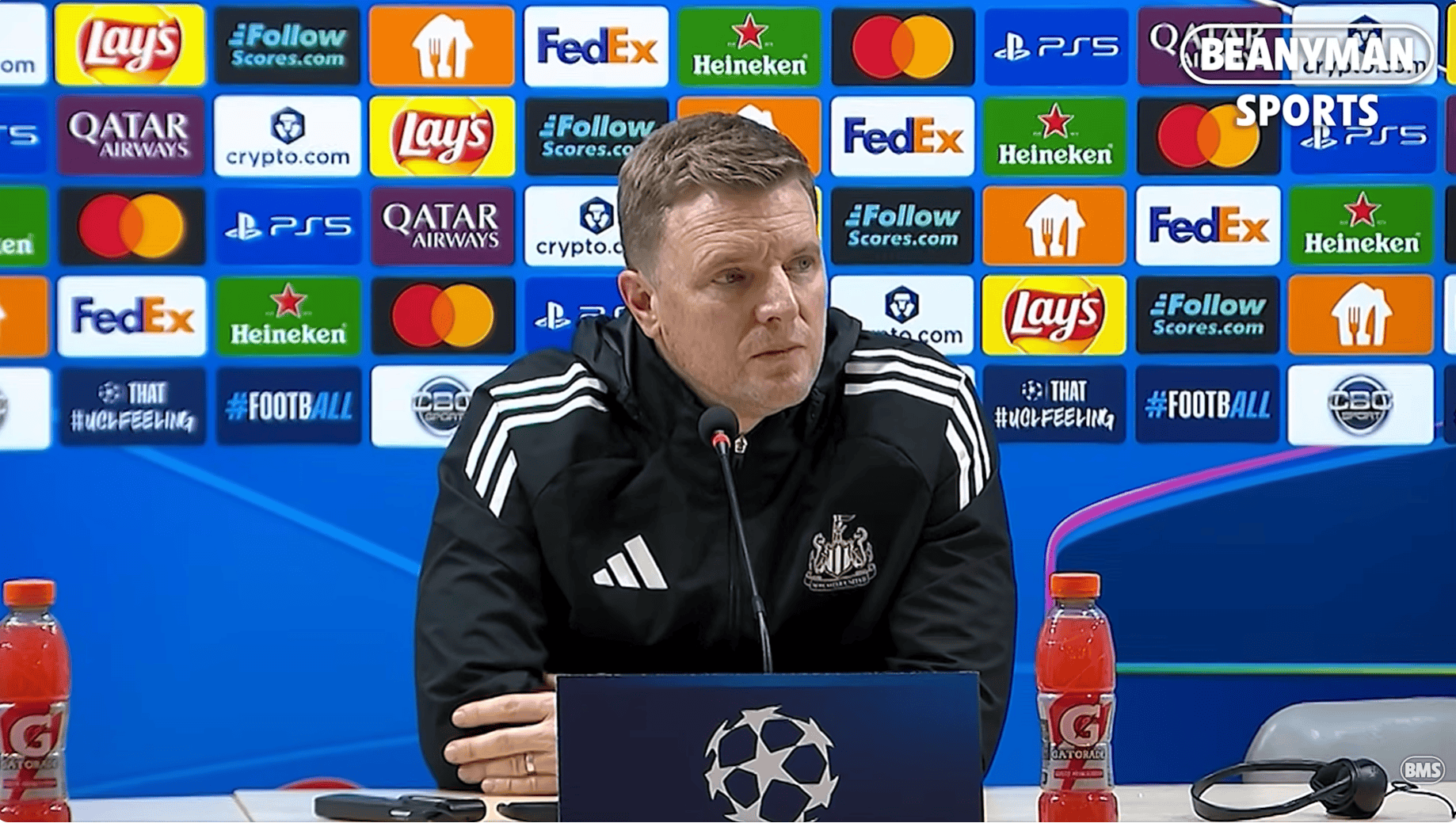 虎扑02月19日讯欧冠淘汰赛附加赛首回合比赛,纽卡客场6-1击败卡拉巴赫。赛后,纽卡主帅埃迪-豪出席了新闻发布会。