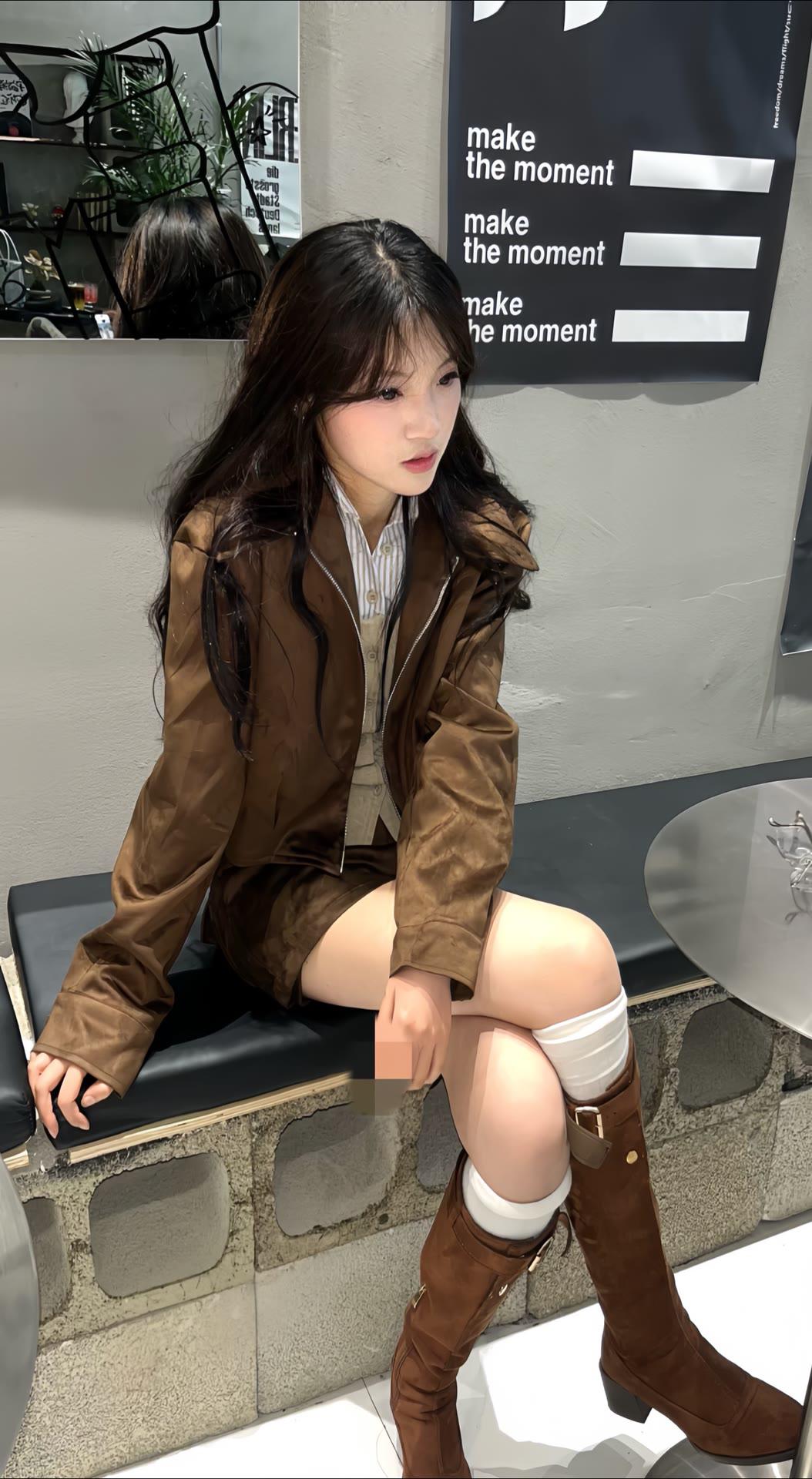 米白小香风外套+同色微喇裤,温柔又显气质,简约高级感拉满,是通勤和日常都很适配的