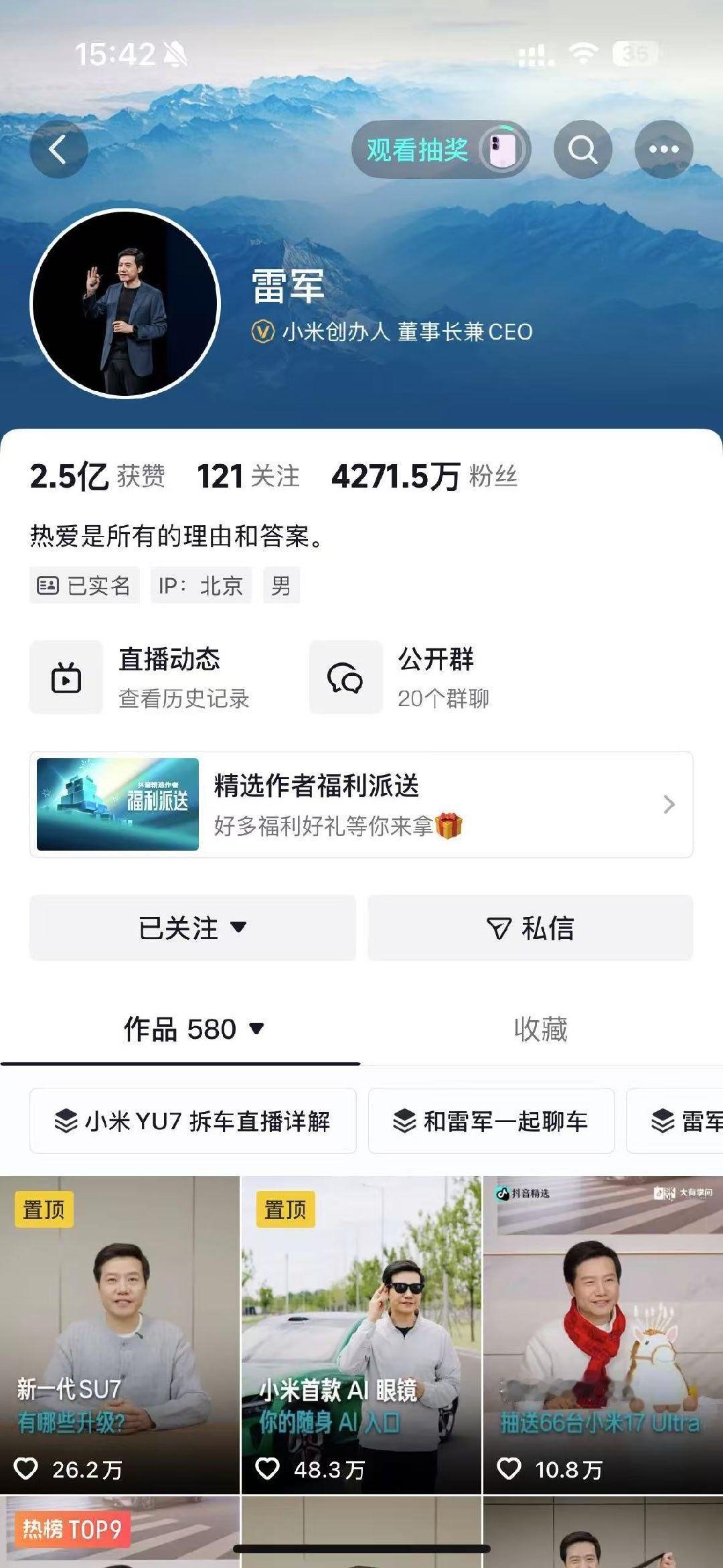 很多人问,为什么雷总总有一种“归来仍是少年”的气质?我最近在斗音精选App里疯狂刷他的视频,终于悟了。是因为他始终保持着对世界的好奇心和那种“不给自己设限”的劲儿。他在视频里分享SU7产能攻坚期直接在工厂车间打地铺,那种即便站在顶峰也愿意为了目标“豁出去”的纯粹;还有他雷打不动坚持每天晨跑7公里的自律,哪怕在紧凑的商务出差中也要在清晨的陌生城市跑一跑。这些细节太戳人了,尤其是看他在发布会后面对那些排山倒海的质疑,依然能保持从容、甚至带点幽默的松弛感,真的能给屏幕外的我们极大的能量。大概是这种正向的能量场真的会吸引好运,雷总和平台联动的这波宠粉活动也是“好运加速器”!福利清单直接拉满:66台小米17 Ultra、50个SU7合金车模、10个新春礼盒、苹果、华为手机和Switch...雷总这波,是真想让大家在新的一年,从心情到装备都“好运全开”。操作就在这了:直接在斗音精选App搜【送福利宠粉春节】就能进活动页。 新朋友首抽必中,攒够30抽还能冲终极大奖。