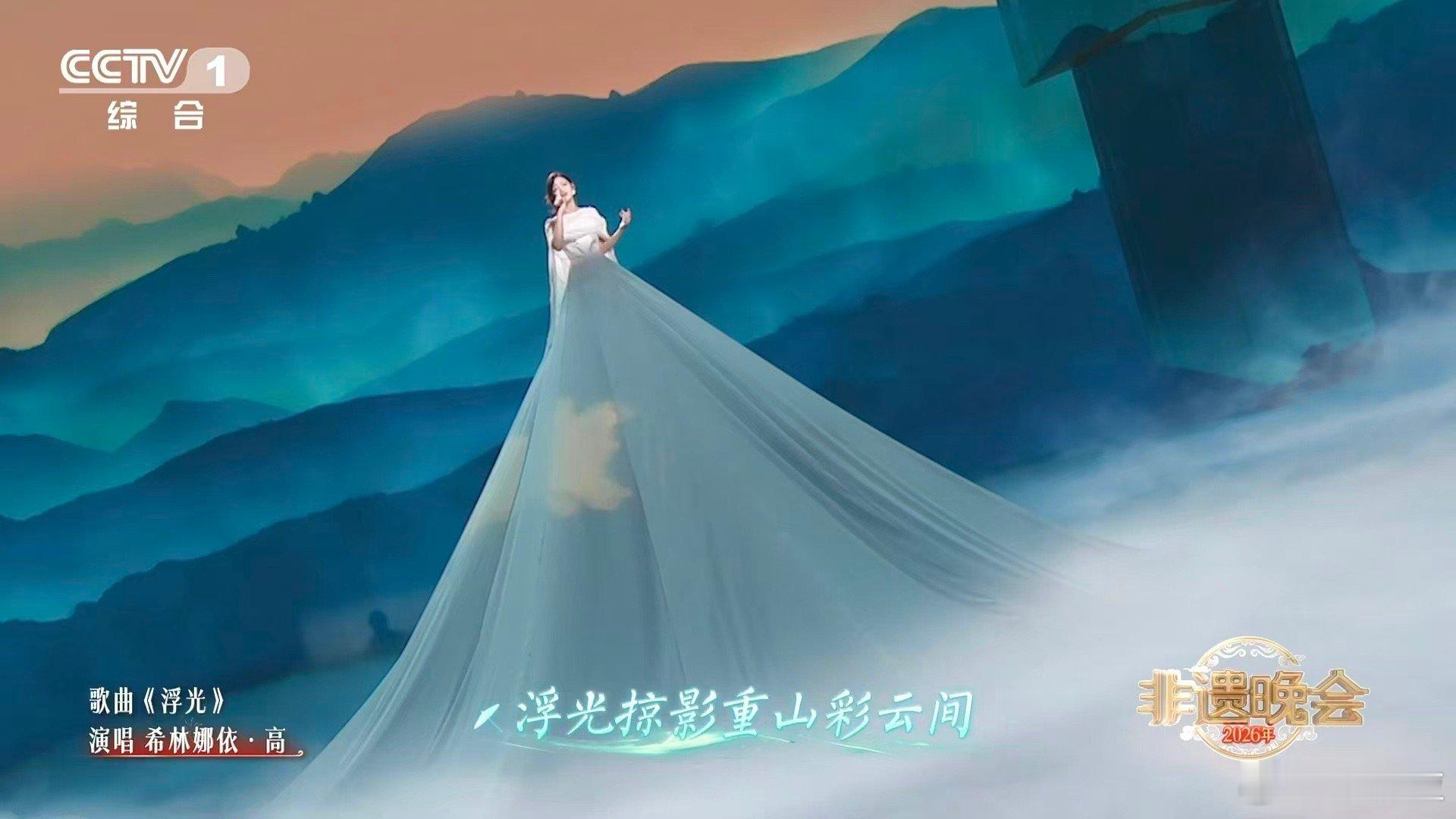 7米渐变长裙铺满舞台,青绿山水在歌声里流淌。希林娜依高的《浮光》不只是一首歌,是把南昌清音唱进人心,让纸伞夏布重新发光的神奇瞬间。中式美学的天花板,今天又升高了。以为是山没想到是7米变色长裙希林娜依高唱出了中式美学的震撼