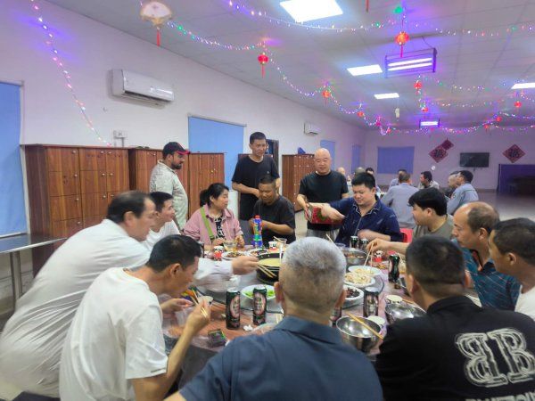除夕之夜,塔尔项目部内举办团年宴,现场喜庆温馨。