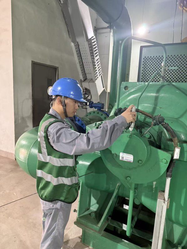 塔尔项目发电厂内,技术人员正在检查设备运行。