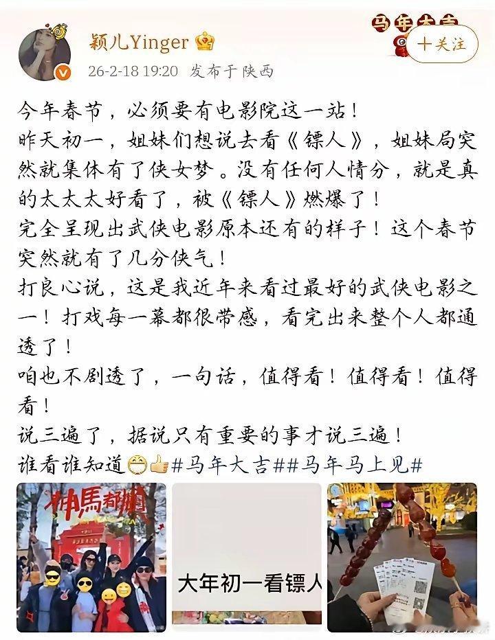 谢霆锋应该没有想到,颖儿竟然会这样评价他主演的《镖人》,说这是她近年来看过最好的武侠电影之一!颖儿说她和姐妹看《镖人》,都有了武侠梦。没有任何人情分,该电影太好看了,被燃爆了,打戏每一幕都很带感,看完出来整个人都通透了!想不明白,既然《镖人》这么好看,为什么截止今天早上11点07分,累计票房才2.67亿元人民币,比《飞驰人生3》少近10亿元人民币呢?是题材不好,还是主演票房号召力不行?