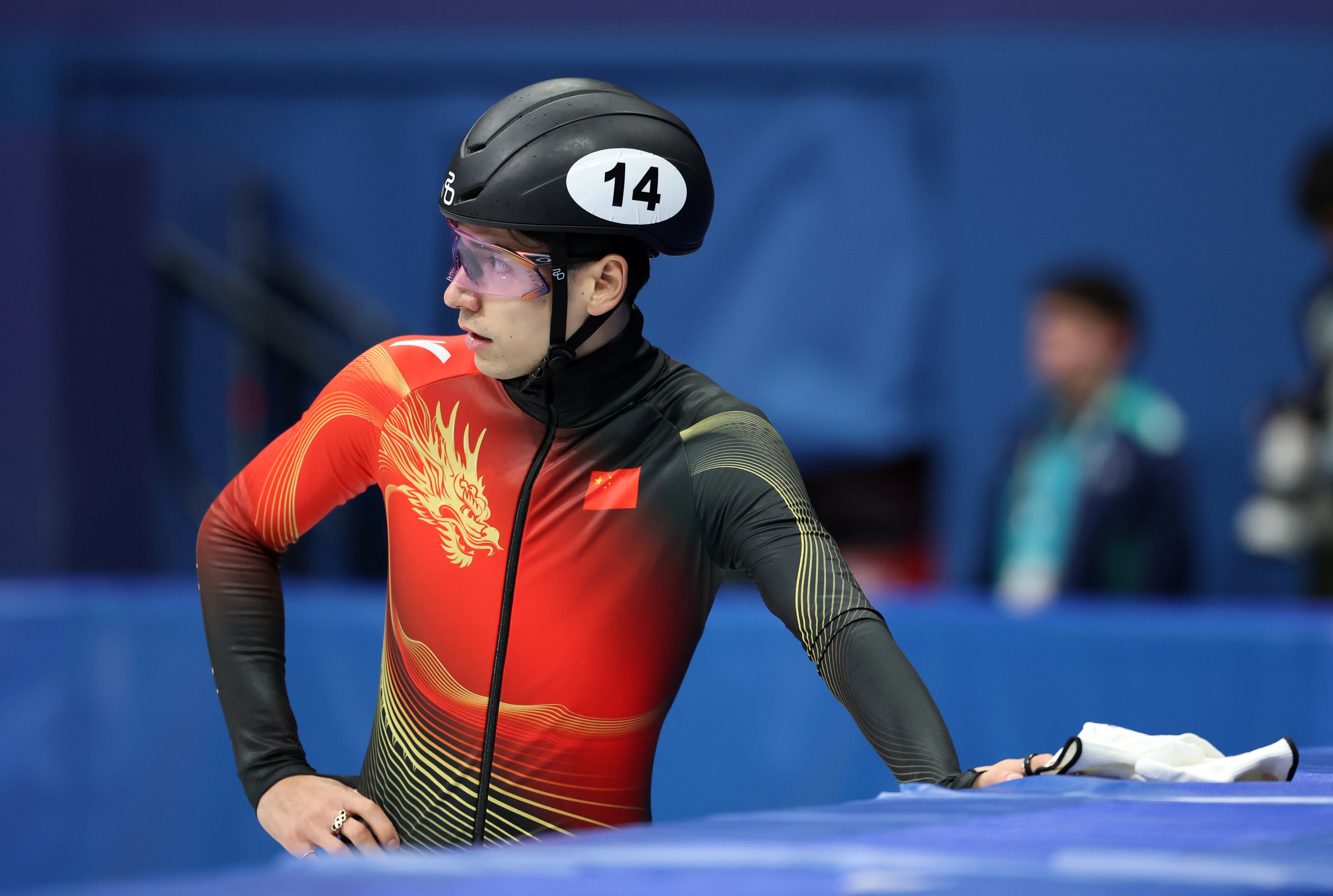 刘少昂这个眼神太心疼了!500米是他最后一个项目,结果自己又摔出去了,这是无缘决
