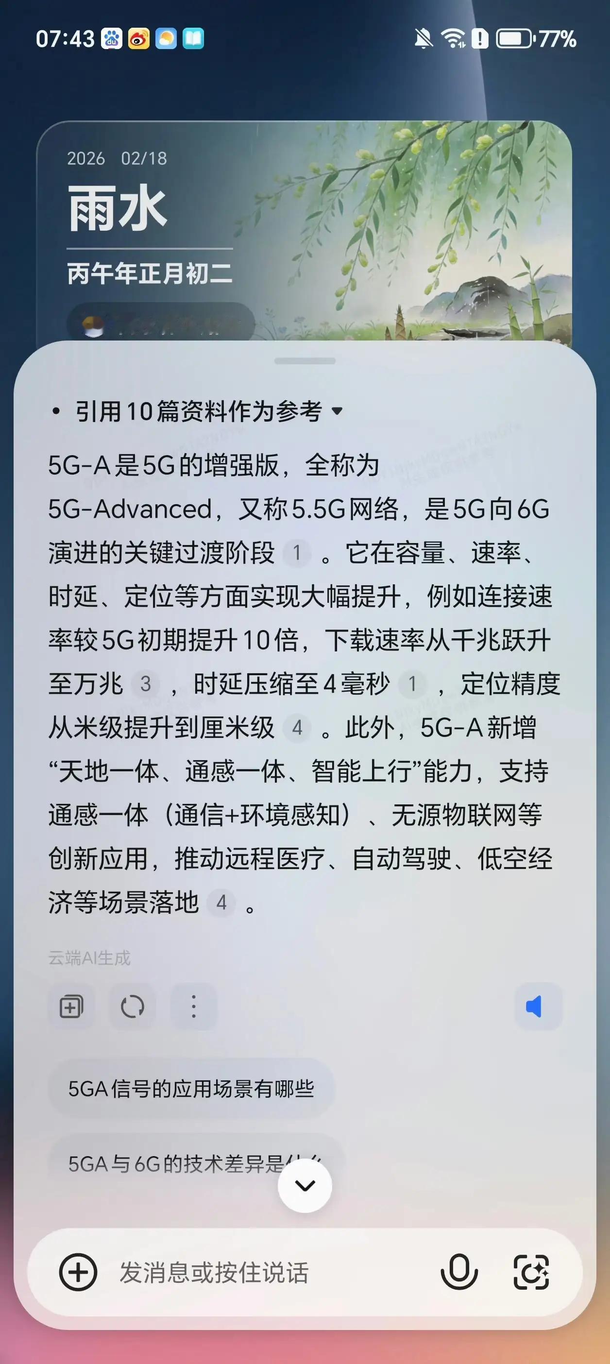 荣耀GT更新后直接变身!突然显示5GA,这是打通任督二脉了? 用了才一个多月,更新完系统直接给我整懵了😱 信号栏从5G变成5GA,不是5G也不是5A,这到底啥来头? 问了YOYO才知道:这是5.5G(5G-Advanced),5G向6G过渡的增强版! 网速更快、延迟更低,属于悄悄升级的隐藏福利🚀 千元机体验到准6G网速,荣耀GT这波更新太良心 有没有同款机友,你们的也变5GA了吗?