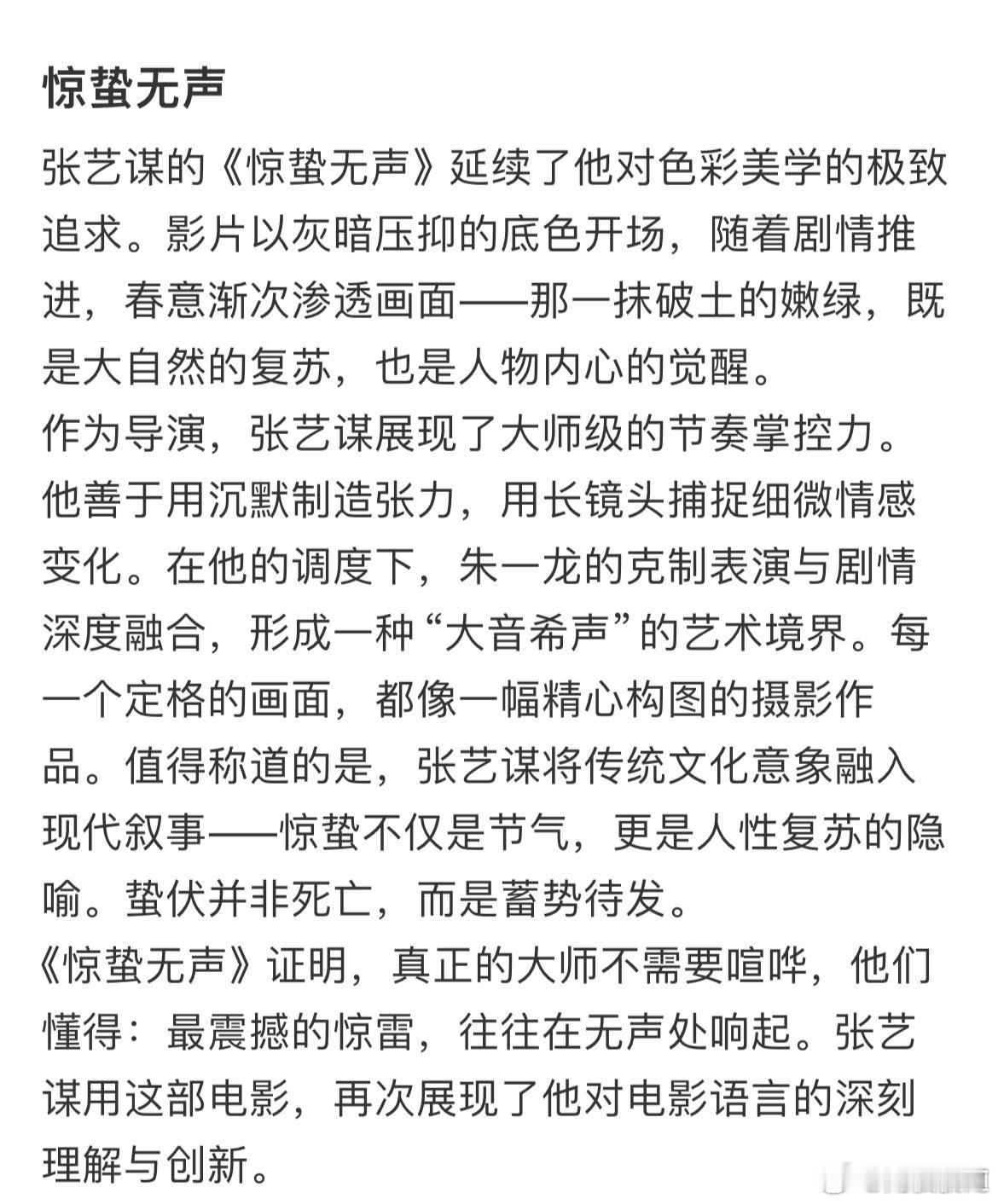 张艺谋总是被低估 那可是张艺谋啊!75岁越拍越勇!《惊蛰无声》贴心短时长,镜头、调度、质感全在线,每一帧都是大师级水准!
