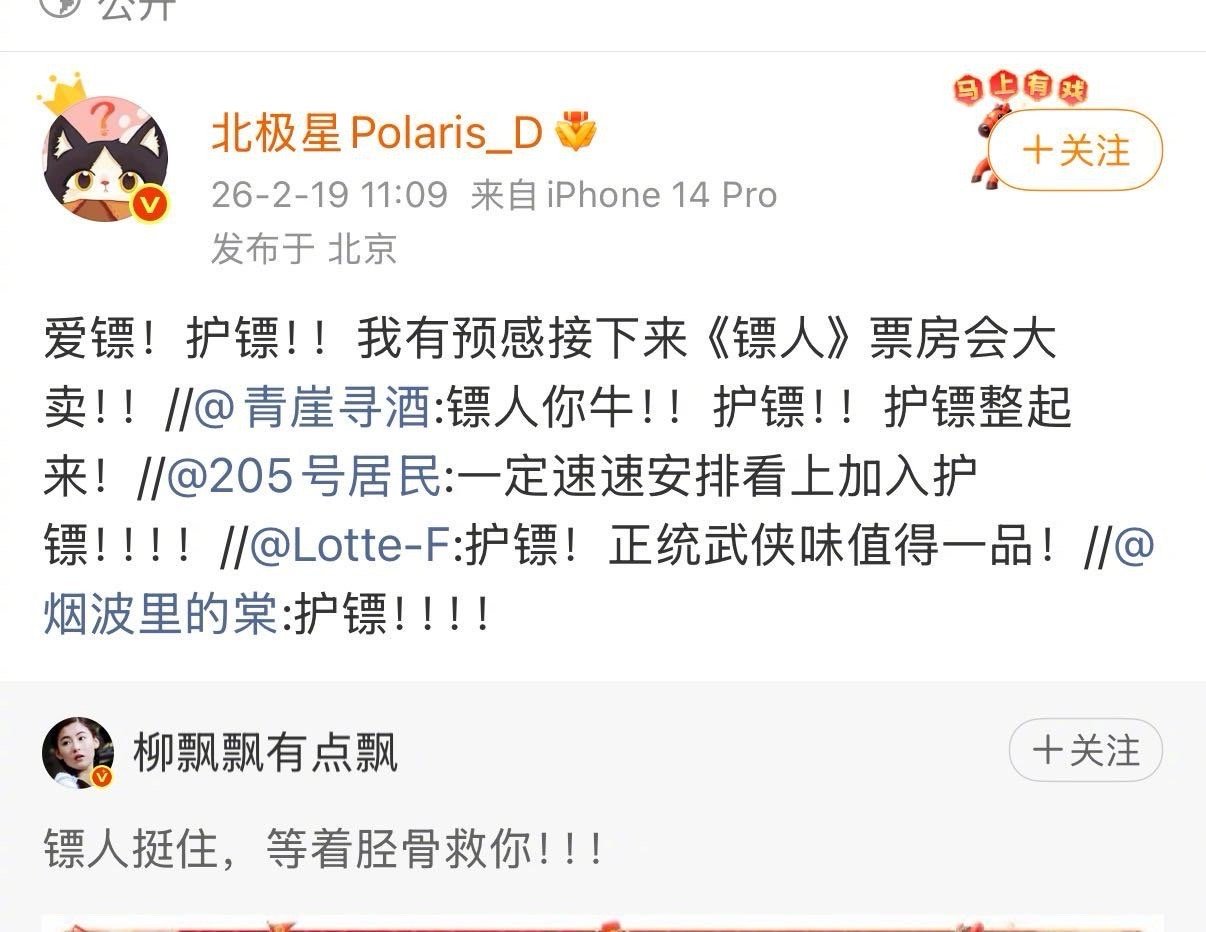 我们一起护住镖人这趟镖2026还能看到这么用心的武侠片太珍贵!票房逆跌就是最好证明,自来水全员集合,一起护住这趟镖。