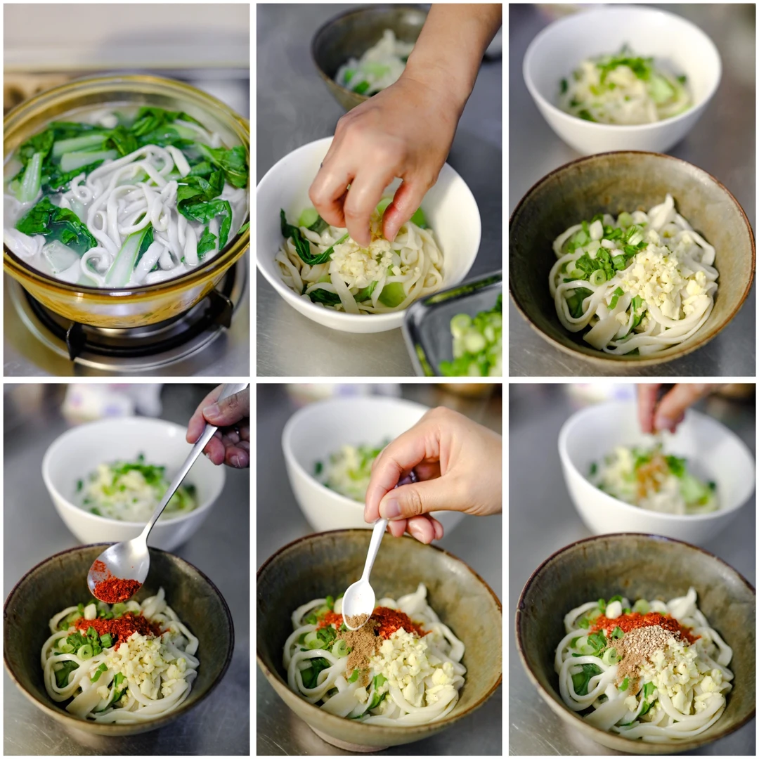 棍棍面/葱末/蒜末/青菜/五香粉/辣椒面/芝麻/食盐/味精/香醋/生抽