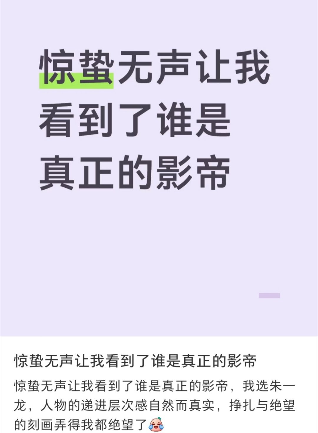 电影惊蛰无声,朱一龙就是这部电影里的演技标杆和灵魂戏眼!美人影帝的实力、口碑和路