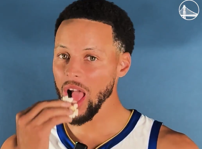 虎扑02月20日讯今日,勇士官方在社交媒体上晒出了一段斯蒂芬-库里吃爆米花的短视频,为全明星赛后勇士的首场比赛预热。