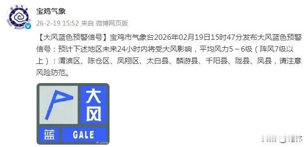宝鸡气象:大风蓝色预警信号