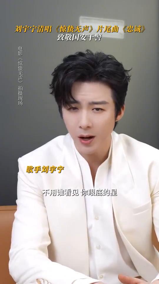 刘宇宁清唱《惊蛰无声》片尾曲,致敬国安干警。 电影《惊蛰无声》拍摄现场,歌手刘宇宁。 在中国,我们不常说国安警察,是你无悔的逆行。《忠诚》,你沉默的背影,不用谁看见你眼底的星,以孤勇之名前行。《忠诚》,电影惊蛰无声片尾曲,词张艺谋,曲春觉晓,唱刘宇宁。