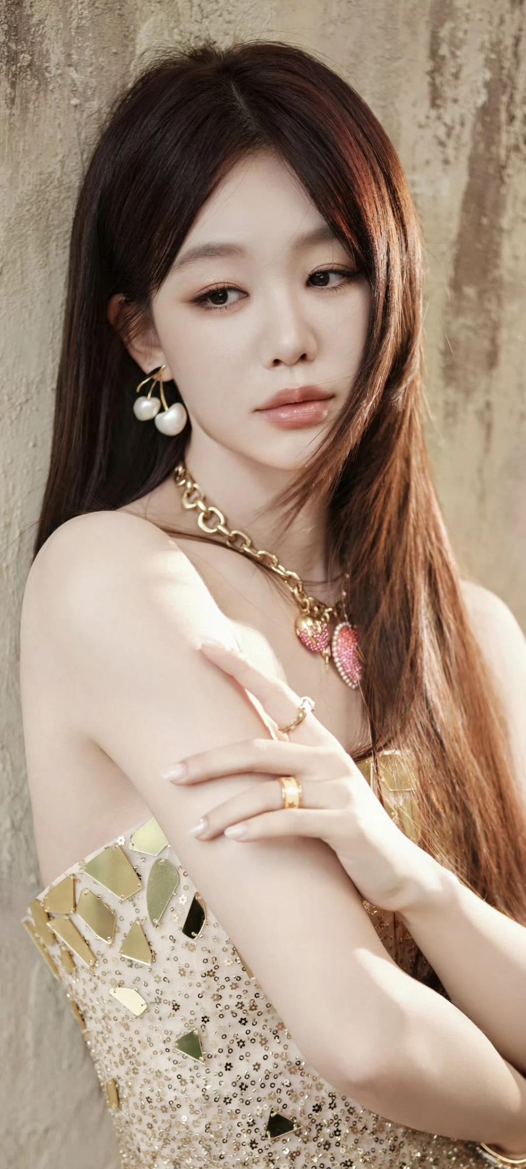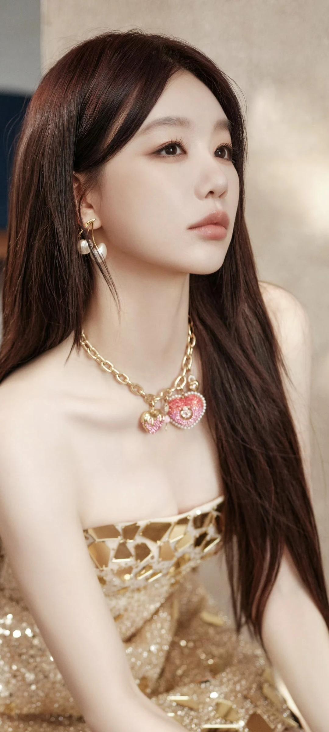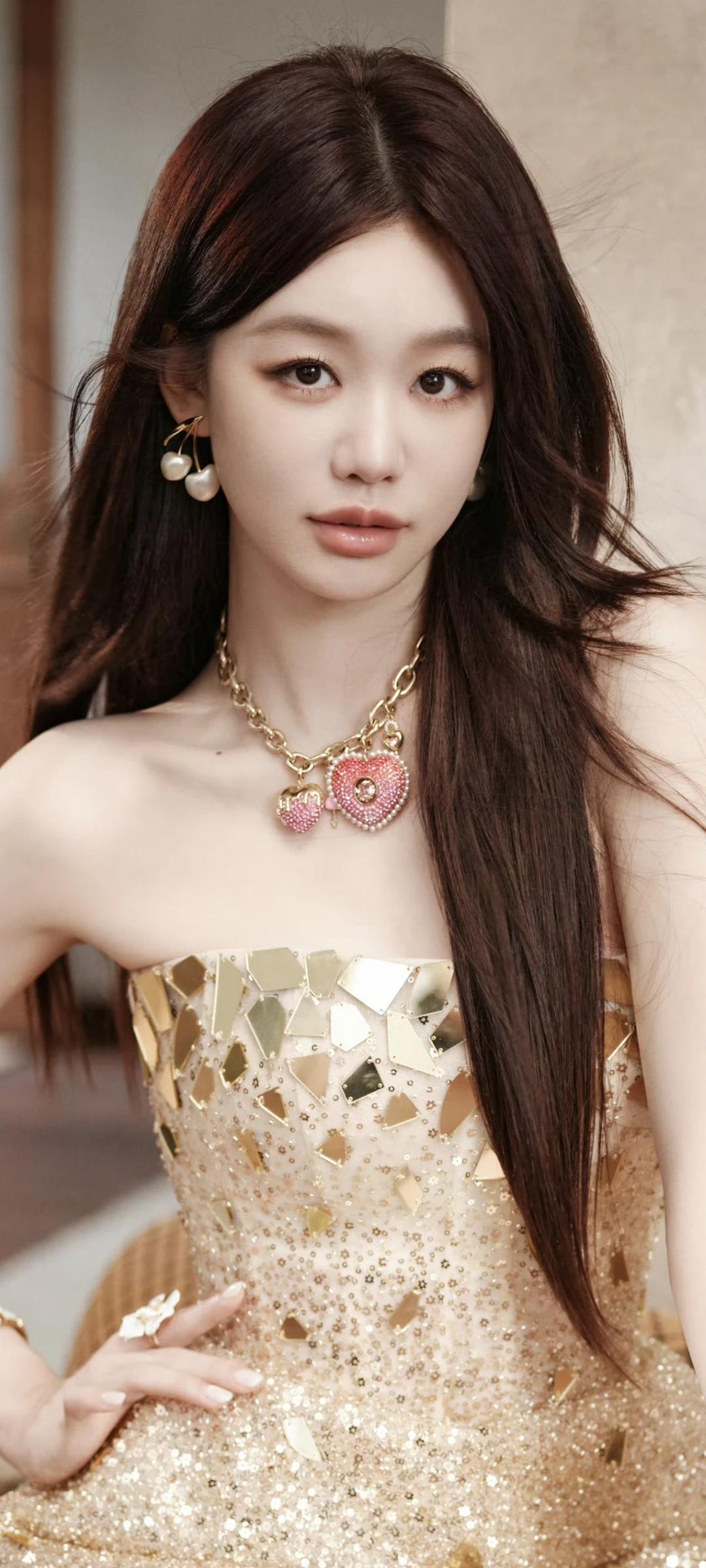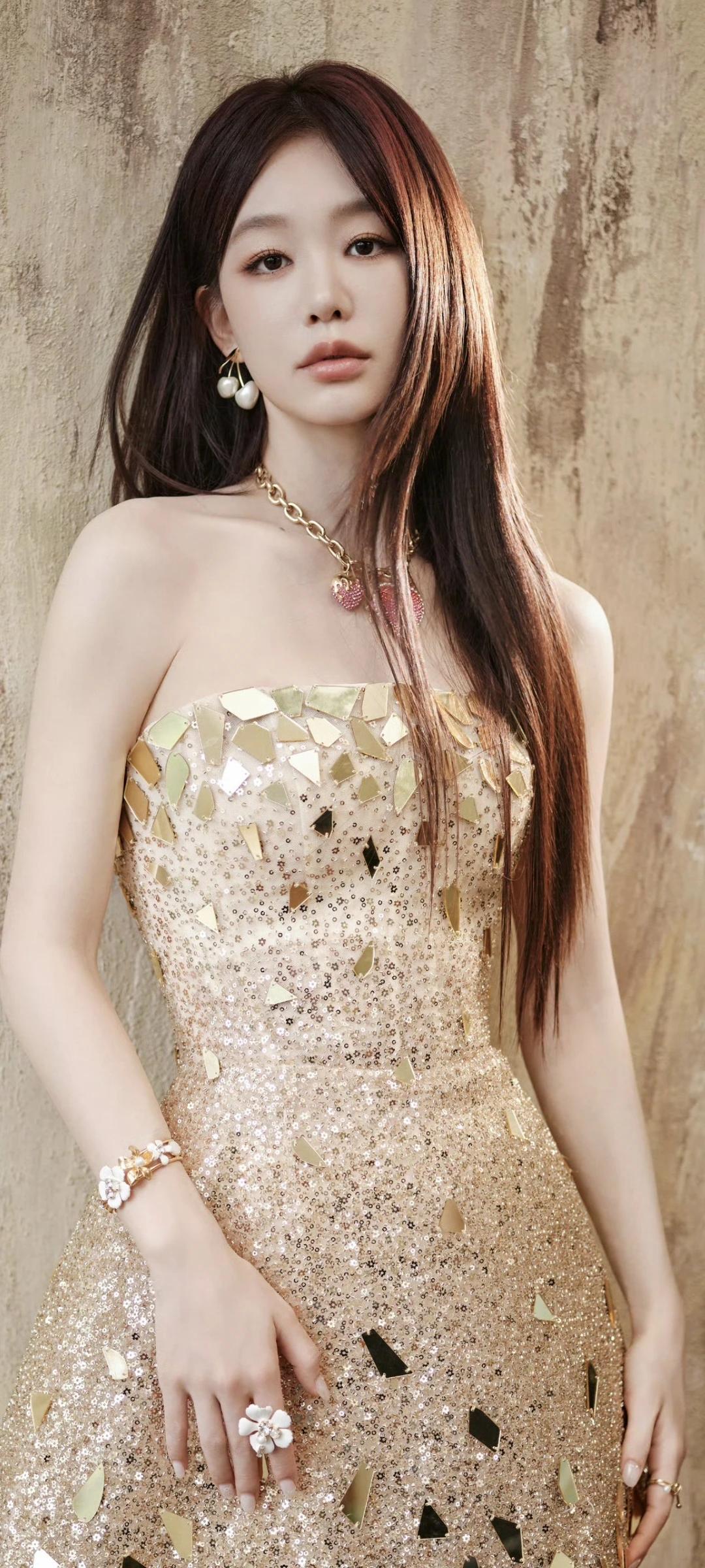 徐梦洁写真壁纸~被这套金色亮片抹胸裙美到!