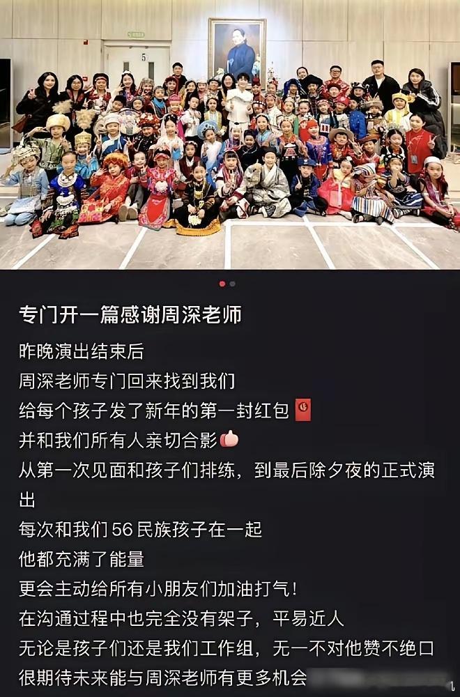 5600块钱,撕开了娱乐圈多少“人精”的遮羞布?春晚刚散场,周深扭头就折了回去。没别的事,就是为给那56个伴舞的娃娃,一人亲手塞一个100块的红包。你别以为这是钱的事。一百块,对一个顶流算什么?这事的“核”,是他把这些孩子当成了平等的合作者,而不是表演完就可以被遗忘的“背景板”。聚光灯下的完美客气,太容易了。难的是灯光一关,在谁也看不见的后台,那份发自内心的真诚。这玩意儿,演不出来。