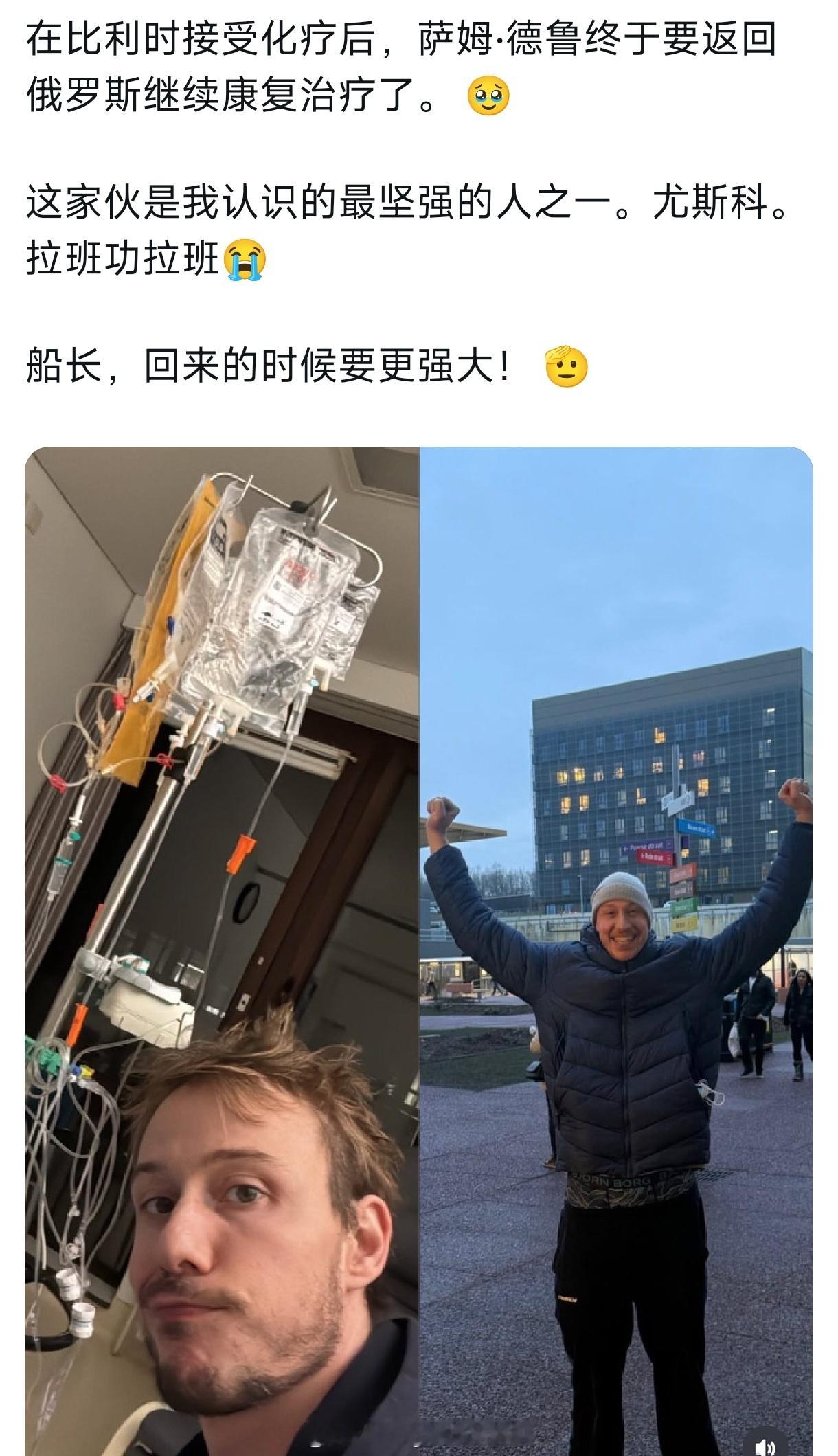 比利时国手德鲁记录癌症化疗期间的感受,妻子拉巴捷耶娃已经怀孕。化疗一结束就要返回