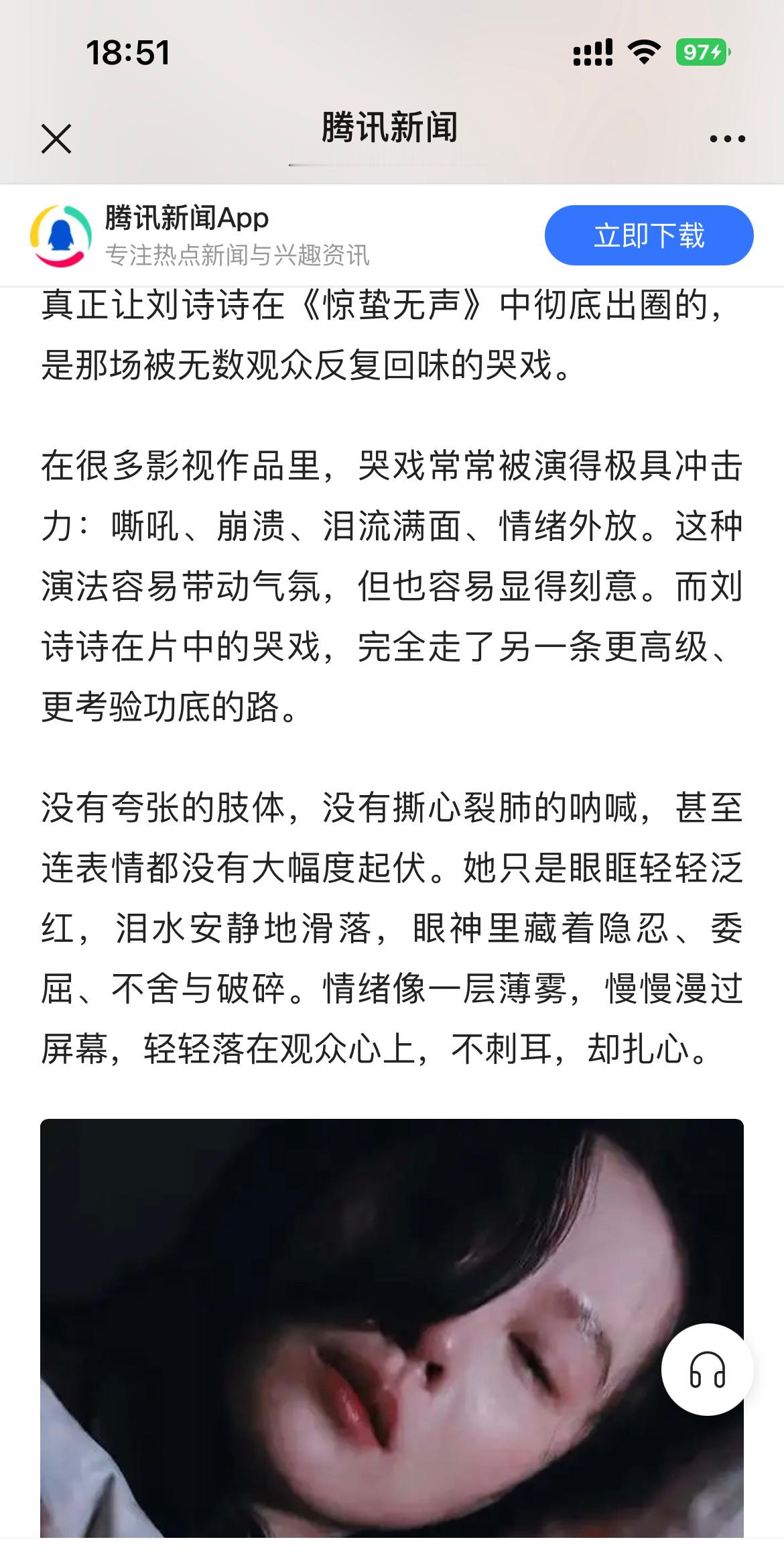 这正是张艺谋最擅长捕捉的表演:克制、留白、于细微处见真情。业内常说,哭戏最见演员功力。大哭不难,难的是不哭出声也能让人共情;爆发不难,难的是收着演也能击穿人心。刘诗诗做到了!!电影惊蛰无声