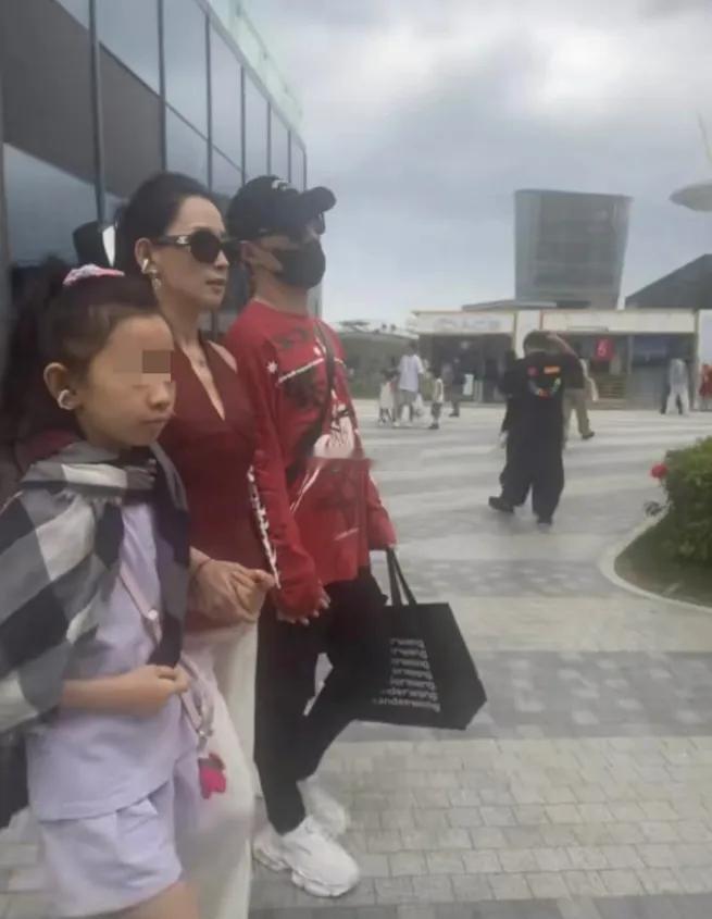 向佐环球影城累瘫长椅,郭碧婷素颜盘发一手牵俩娃,还要哄醒巨婴!她穿向佐旧衣,向