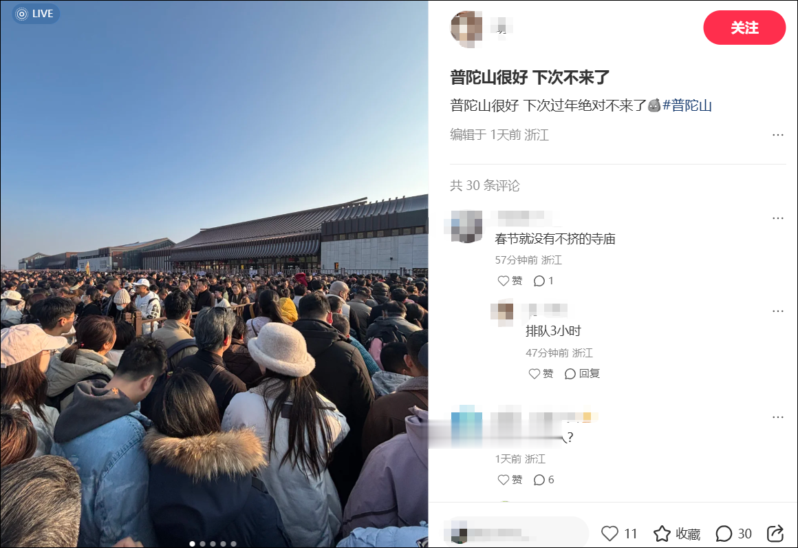 昨天(2月19日),普陀山也曾发布线上售票暂停消息。在春节前,高德曾发布《2026年春运出行预测报告》,在“驾车热门登山胜地”“驾车热门景区”TOP10预测榜上,舟山普陀山分列榜首和次席!