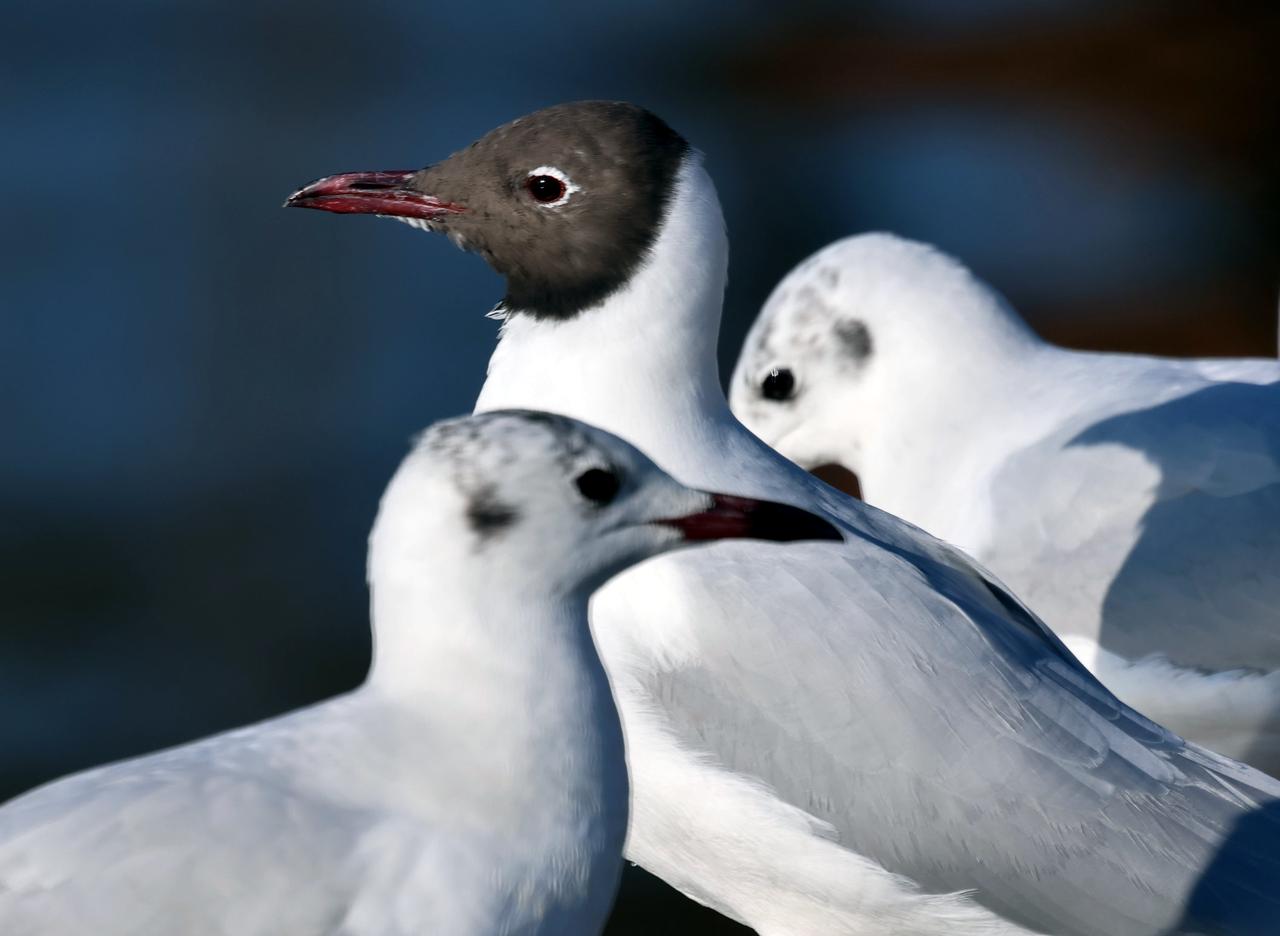 它们长出了繁殖羽! 已是早春2月了,随着天气变暖,从遥远西伯利亚和蒙古等地来昆明过冬的红嘴鸥已陆续长出了繁殖羽,头部羽毛由白变黑,变成了黑褐色。 这也意味着,它们离开春城北返的日子越来越近了!