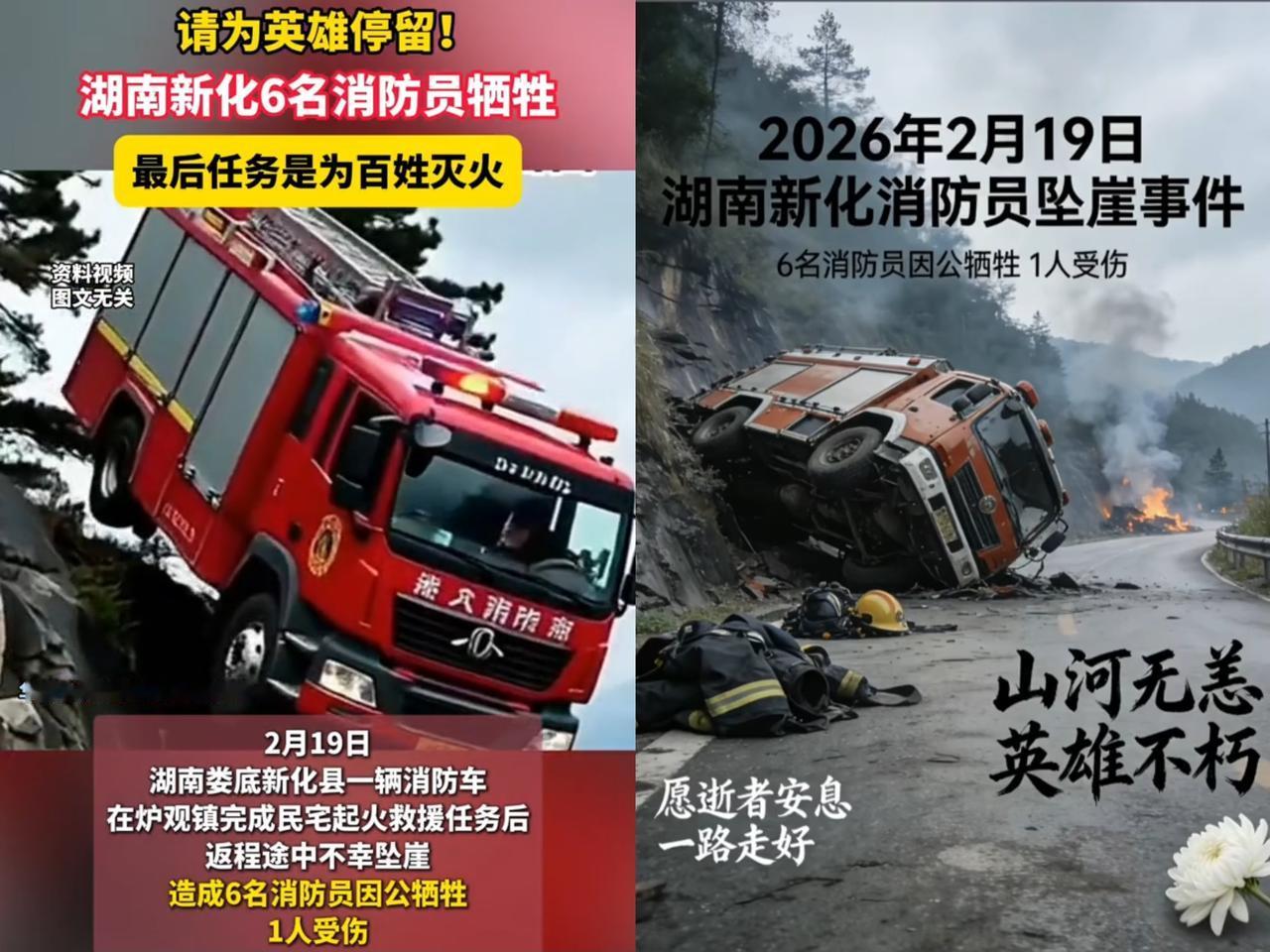 他们灭完火, 却再也回不了家, 湖南新化这场悲剧,真 叫人揪心!2 月 19 号,大火扑灭,大家刚松口气,谁能料到,归队路上,消防员乘坐的车子坠下山崖。6 名消防员永远停在了这里, 1 人还在生死边缘挣扎。出事的山路又窄又陡,连护栏都没有,本地人开车都得小心翼翼。多让人痛心啊,最危险的火场他们都闯过来了, 却倒在了回家的路上。听说有人刚订婚,有人孩子才几个月大,出发前还说着“明天早点回”。这哪能仅仅算意外?乡下救援道路、老旧车辆安全 山区预警,都该狠狠重视起来!食堂饭盒还在,工牌还挂着,可他们却再也回不来了。英雄走好愿天堂无险。大伙说说,该咋做才能避免这样的悲剧重演?