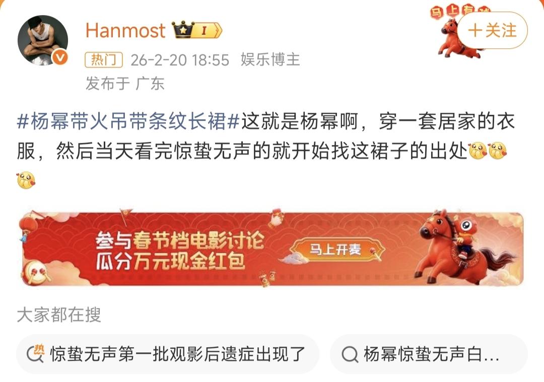 杨幂引发热议 2月20日,杨幂突然引发了热议,只因为她在《惊蛰无声》里饰演的角色“白帆”却意外带火了时尚圈。她在片中穿的那条白绿条纹吊带裙,直接让“十年前的穿搭”重回潮流,引发全网热议。网友们纷纷晒出同款穿搭,不少商家也迅速推出平价替代款,评论区里求购链接的留言更是刷屏。 这条吊带裙,是杨幂在电影《惊蛰无声》里的一个经典造型。 它是一件条纹针织吊带裙,以干净的白色为底色,上面点缀着绿色、粉色和浅蓝色的细条纹,看起来清爽又温柔,很有夏天的感觉。 杨幂搭配了一个黑色的单肩包,用手轻轻抓着包带,再加上耳朵上的无线耳机和颈间的细项链,整体造型就像一个走在都市里的普通女孩,自然又时髦。 这条吊带裙看似简单,却和她清冷又专注的气质完美融合,让“白帆”这个角色一下子就立住了,既有生活气息,又藏着故事感。 40岁的杨幂在片中状态超顶,脸上不见丝毫岁月痕迹,一身绿白条纹吊带裙搭配慵懒大波浪,三七分的身材比例堪称完美,哪怕是简约的款式,也被她穿出了高级质感。 不得不说,这颜值和身材,真的美到让人挪不开眼!
