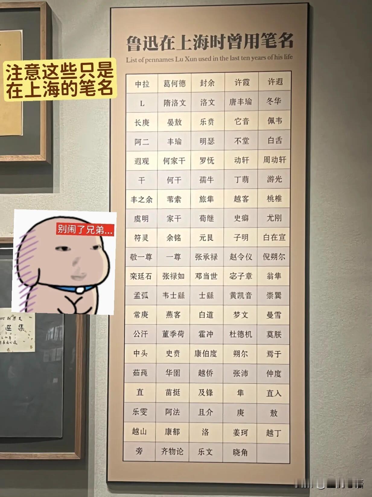 笑不活了! 原来鲁迅才是民国顶级ID大佬! 人家写文章,一个笔名用到底。 他倒好,疯狂囤改名卡。 单字ID“隼”“庚”“洛”随手用。 各种冷门马甲一抓一大把。 妥妥的民国抢注ID第一人。 夜神月死都想不到, L的真名是鲁迅。 就算知道鲁迅也没用, 即便知道叫鲁迅也死不了, 因为本名叫周树人, 哪怕知道叫周树人也没用, 因为身份证写着周樟寿, 就算知道周樟寿也没用, 周樟寿是民国时期的身份证, 民国已经不存在了。