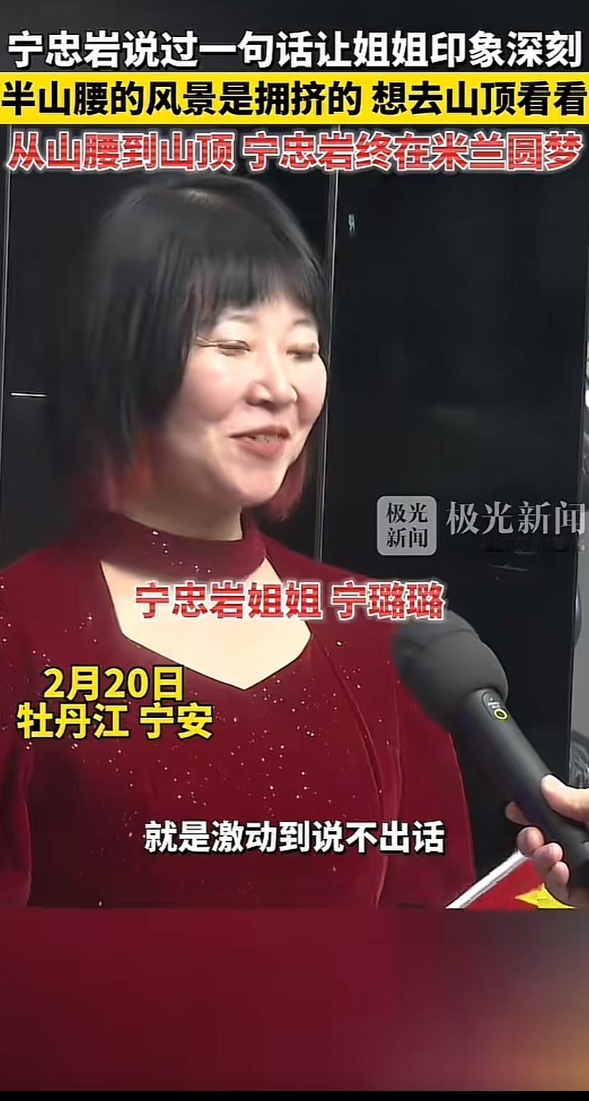 冠军的姐姐果然不一般 宁忠岩姐姐宁璐璐人长得不但漂亮,说话也有水平 宁璐璐在接受采访时表示,弟弟夺冠,她特别激动,激动地说不出话,感觉激动得像心蹦出来一样,她还说弟弟宁忠岩曾说过让她印象深刻的一句话:半山腰的风景是拥挤的, 想去山顶看看,从半山腰到山项,弟弟宁忠岩终在米兰圆梦 弟弟夺冠登顶,风景无限美好。 2026年米兰冬奥会,宁忠岩打破速度滑冰男子1500米奥运纪录并获得金牌。他是第一位在冬奥该项目夺金的亚洲选手。宁忠岩打破了欧美长达102年的垄断。这块金牌含金量太高,太不容易了,打破百年垄断,终于拿下宝贵的一枚金牌 🏅祖国佳节燃放的礼花🎉中,你们家燃放的是最璀璨的那颗 不容易啊!!!为国家争光,为家乡争光 (宁忠岩出生于黑龙江省牡丹江市宁安市石岩镇和平村)宁忠岩不仅仅是你们宁家的骄傲,也是你们村,你们的镇,你们的县,市的骄傲,黑龙江省的骄傲,中国🇨🇳的骄傲,也是亚洲的骄傲,他的冠军彻底征服了欧美人的心里,尤然而生敬意。 有这么一位才华的姐姐的支持,弟弟以后前景会更好。恭喜宁家!伟大的父母培养出了俩个优秀的儿女。家人永远是他圆梦的路上最坚强的后盾。愿一家人永远幸福美满!