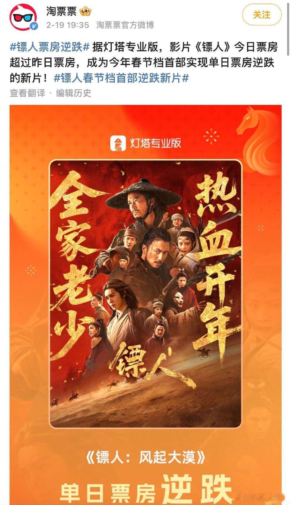 镖人争气 谁还没被《镖人》的争气圈粉?过年被追问时,我只想说:它票房逆跌、口碑第