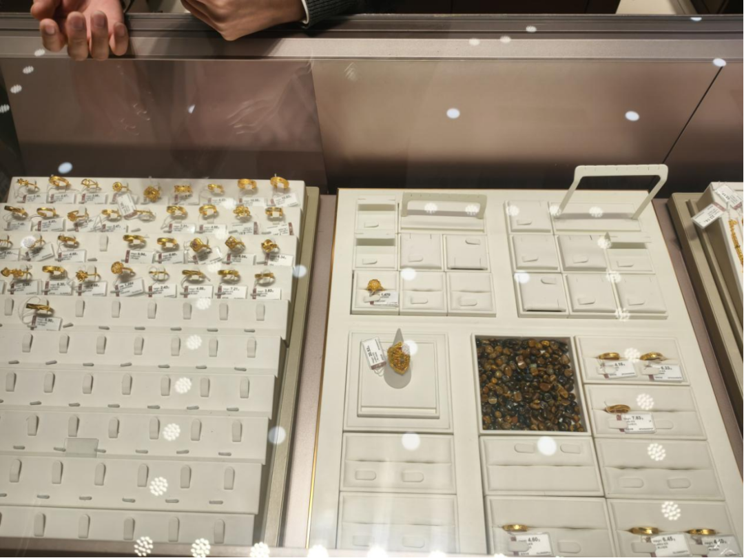 在周大福、六福珠宝等门店内,多个黄金首饰柜台被围得水泄不通。记者在六福珠宝门店内看到,黄金戒指等产品的展示区域已经清空大半。“这些都卖完了,没货摆了。”六福珠宝店内工作人员一边整理着剩余样品,一边对记者说。