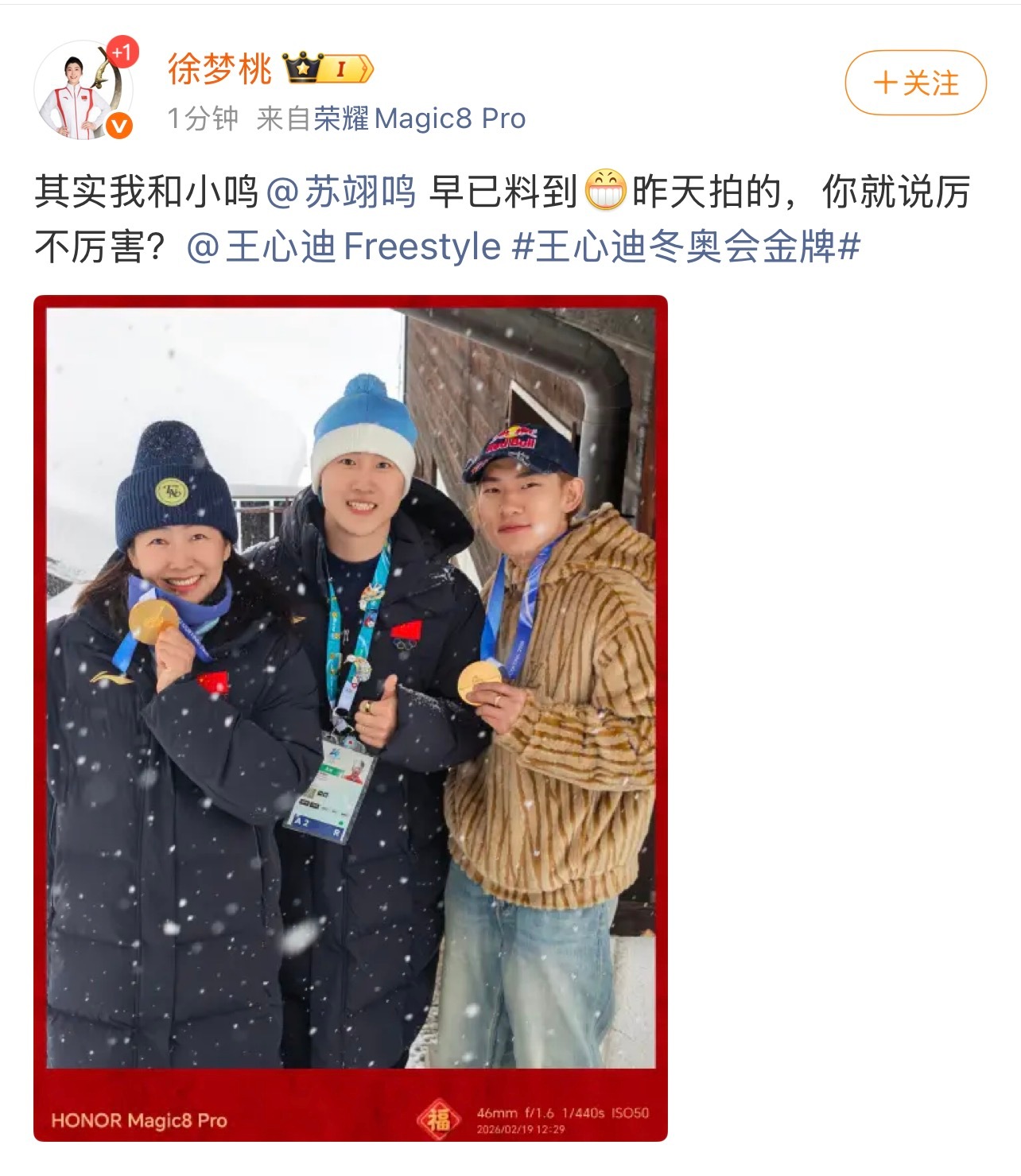 #徐梦桃王心迪苏翊鸣三人合影##徐梦桃这张照片含金量超高苏翊鸣昨天刚和徐梦桃王心