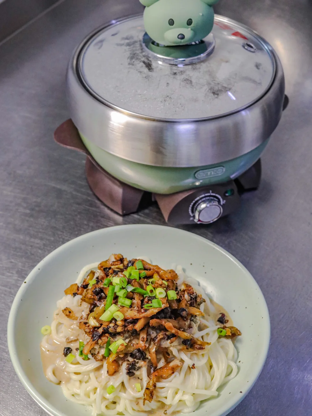 🌈一个人听着音乐,安静、轻松又很愉快的享用了这一碗豆豉麻酱榨菜面。这小锅还真不错,别看不大,做饭的效率和速度还挺高,感谢我的朋友~