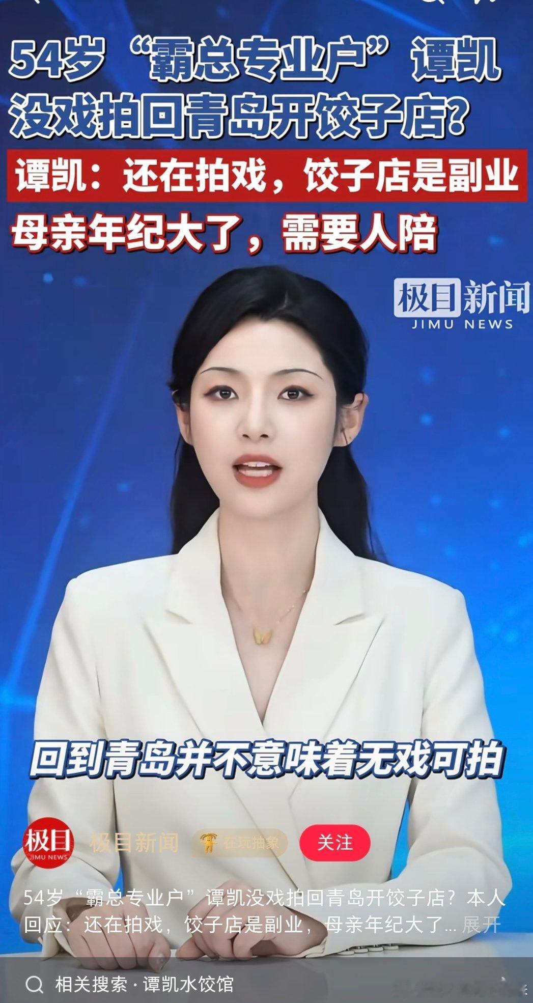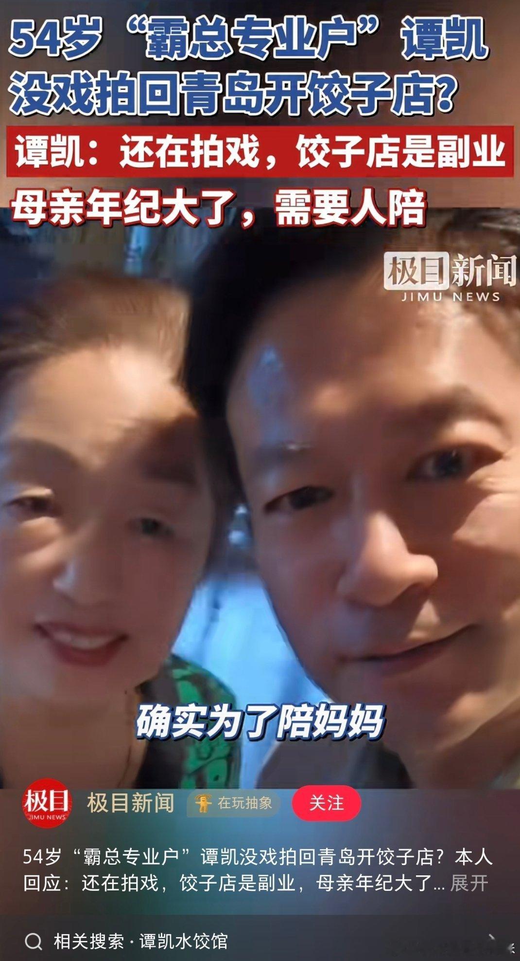 谭凯被传无戏可拍自曝现状谭凯是孝顺儿子,回青岛开饺子馆只是副业,主要是母亲年纪大