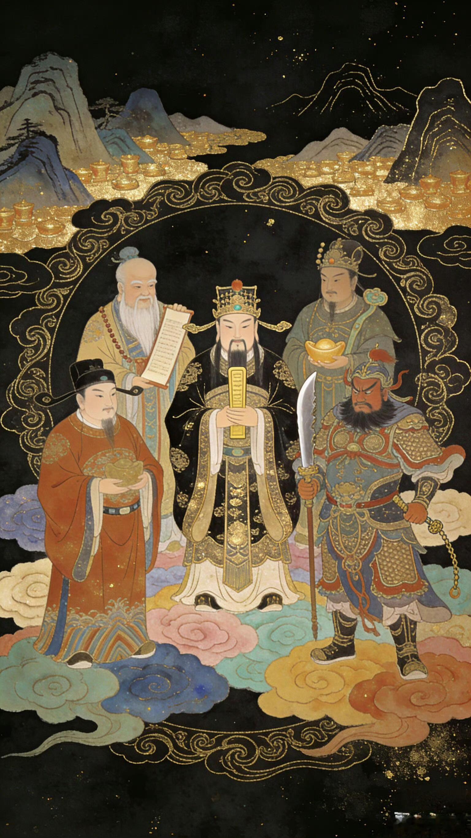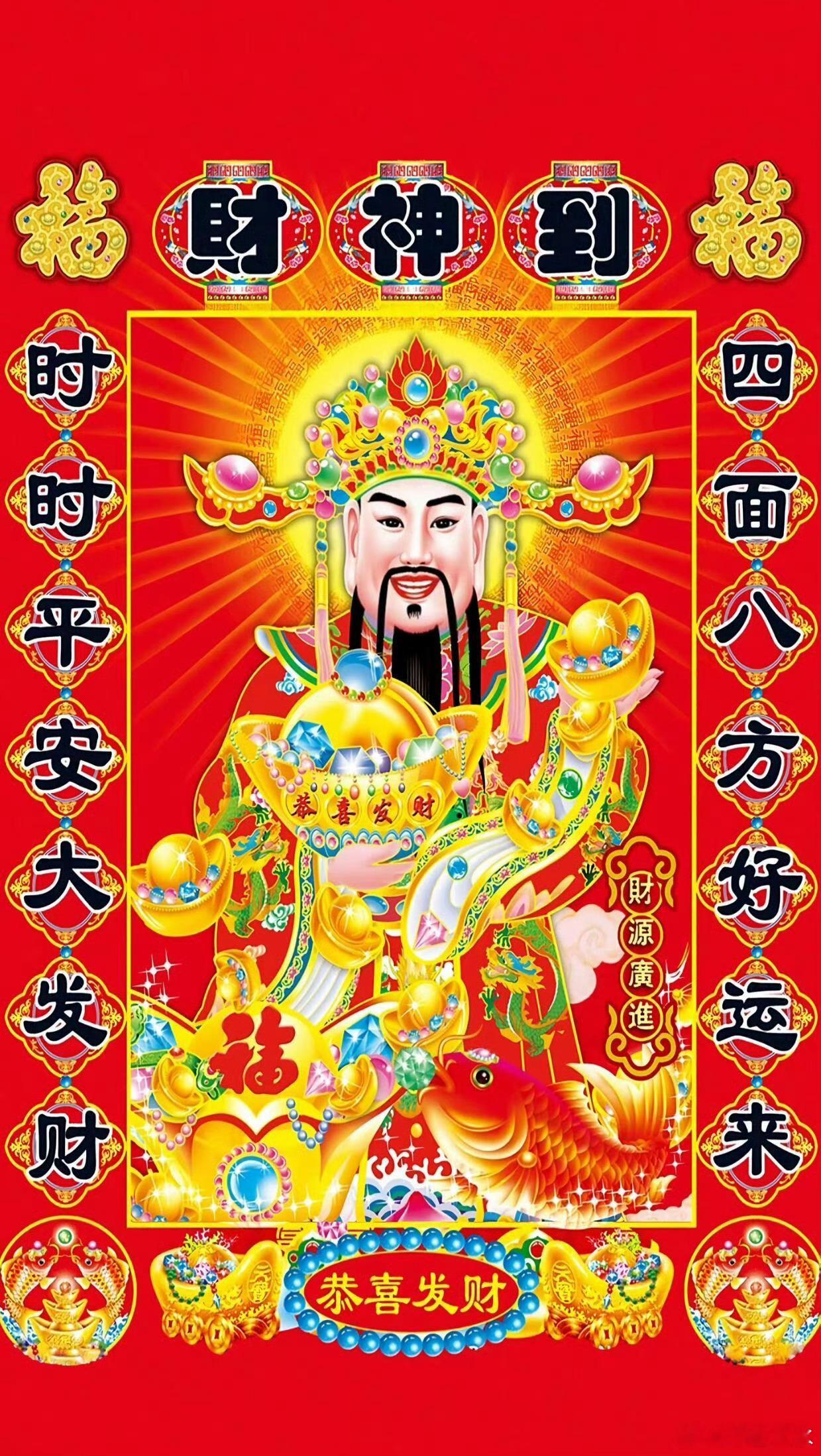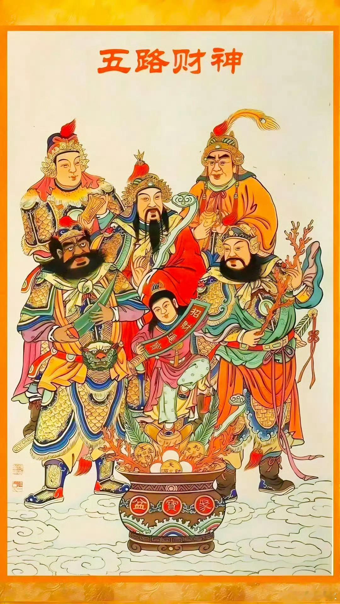 迎财神五路财神天门开,地门开,五路财神进门来一赐福,二赐财,赐来金银抱满怀三赐吉,四赐祥,赐来如意榜身旁善门开,孝门开,善因孝果财自来恭迎五路财神进我家门来🙏🙏🙏
