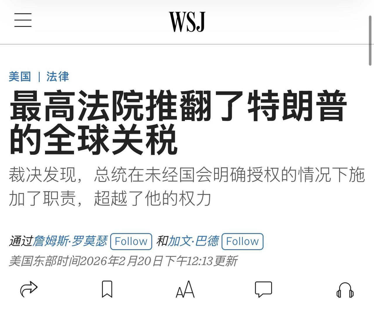 美国最高法院推翻了特朗普的全球关税,哪个经济体成为了最大的冤大头? 当地时间2月20日,美国联邦最高法院以6比3作出重大裁决,认定美国总统特朗普援引《国际紧急经济权力法》(IEEPA)对全球多国实施的大规模关税措施违法。 最惨的就是日本和中国台湾地区,妥妥成了美国霸权下的顶级冤大头。当初被美国拿捏时,它们乖乖就范、主动让利,就算被高额关税狠狠收割,哪怕跑到美国最高法院起诉,也照样没用,半点公道都讨不回来。(自愿签署去美国高院起诉也没有用。)反观韩国,靠国会不批准的拖延战术成功避坑,印度也以拖待变保住利益,只有日本和中国台湾一门心思跪舔,主动送上门当最大韭菜,既不敢硬气反抗,又没半点自保手段,最终被美国吃得渣都不剩。这就是盲目依附强权的下场,看似站队美国,实则沦为随时可以牺牲的炮灰,既可悲又活该。