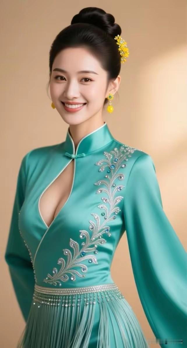 换上这件绣着金荷的旗袍,突然就懂了什么叫“东方美学自带风骨”。缎面的光泽顺着身体