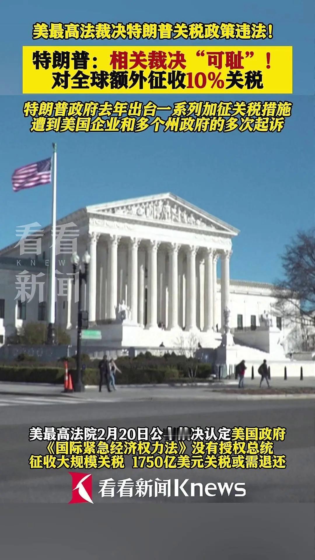 刚被最高法院裁定关税违法,特朗普反手就签令:对全球进口商品加征10%关税,150天临时加码,三天内生效。 这一记“全球通杀”的大棒挥出,表面是“美国优先”,实则是把通胀与代价,转嫁给全世界,最后坑的是本国普通人。 很多人以为关税是“外国买单”,真相扎心:94%关税成本由美国进口商与消费者承担。 从衣服家电到食品日用品,货架涨价、钱包缩水,所谓“保护制造业”,不过是用民众的生活成本,填政治博弈的坑。 单边关税从来不是良药,是饮鸩止渴——扰乱供应链、抬高物价、撕裂全球贸易,最后反噬自身经济。 更值得深思的是:靠关税抢不来繁荣,靠封闭守不住优势。 全球化时代,你中有我、我中有你,筑起贸易壁垒,只会让商品更贵、就业更难、市场更冷。 美国前财长直言,这是“最严重的自我伤害”,衰退风险上升,民生代价沉重。 面对风浪,我们更要清醒: 不惹事、不怕事,稳住自己就是最大底气。 练好内功、做强产业链、扩大内需、坚守开放,任凭外部风浪起,我们稳坐钓鱼台。 真正的竞争力,不靠壁垒,靠品质、靠创新、靠市场与人心。 这一轮关税风暴告诉世界: 单边主义没有未来,贸易战没有赢家,合作共赢才是正道。 把压力当动力,把挑战当机遇,中国经济的韧性,从来都是在风浪里练出来的。 互动话题:你觉得全球关税大战,最后谁最受伤?评论区聊聊你的看法,为中国定力点赞!