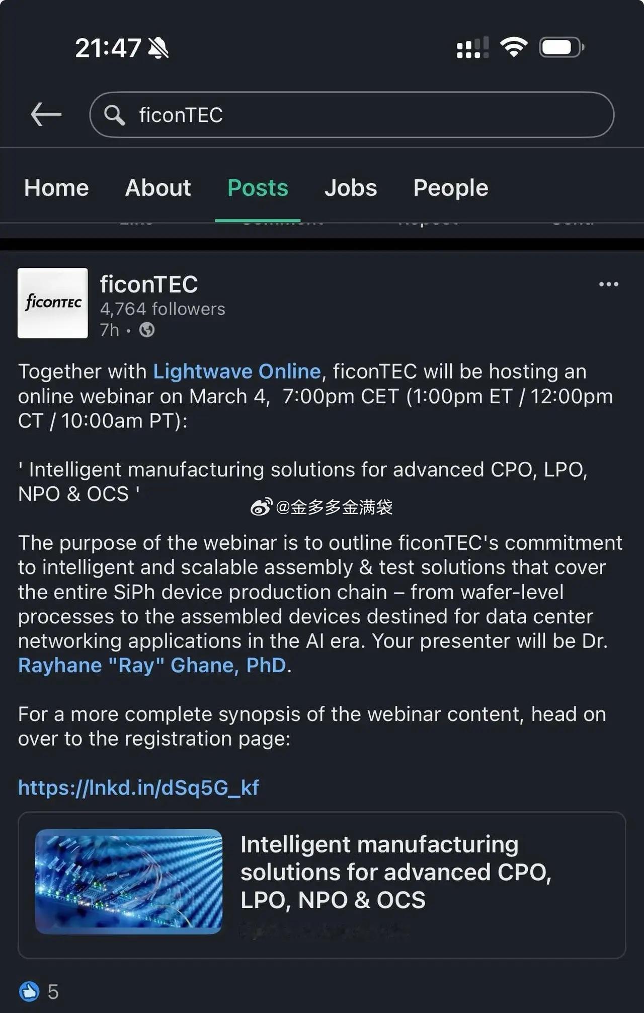 这则动态显示了 ficonTEC 从技术展示 (线上研讨会)到行业社交与合作(线下会议)的全方位市场策略。通过派产品经理直接参与行业前沿会议,ficonTEC能够直接接触潜在客户和合作伙伴,解决自动化和高精度封装这些行业痛点。