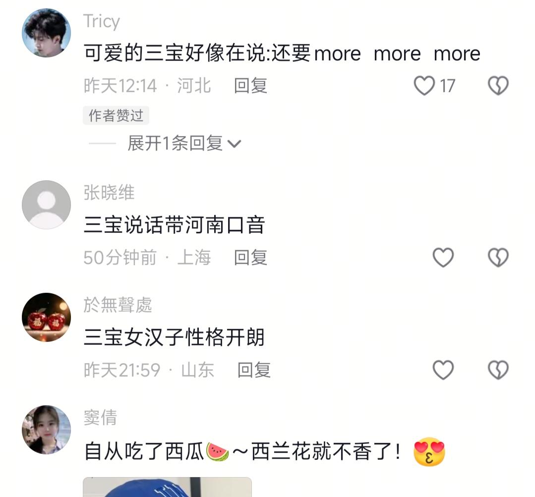 看到河南a妈抱着大西瓜,我忍了 看到她将西瓜切成块状递给三宝,我也忍了 但是看到三宝吃完之后,竟然用婴儿语言,说了一大段话,我实在忍不了 谁懂啊!大半夜刷到河南a妈的视频,本来想划走催眠的,结果越看越上头,大冬天抱着个大西瓜给三个娃分,这细碎的烟火气,直接给我看饿了! 说实话,我本来以为冬天的西瓜都是没味儿的,结果看a妈举着西瓜说这是2026年第一个瓜的时候,我都跟着有点小兴奋。然后她咔咔把西瓜切好,先给三岁的三宝递了一块,这娃第一次见西瓜,盯着看半天,跟我第一次见螺蛳粉似的,满脸写着“这啥啊能吃吗”。 结果咬了一口之后,眼睛直接亮了,咿咿呀呀说了一堆婴语,虽然听不懂,但谁都能看出来是在夸好吃!哎呀妈呀,也太可爱了!然后大宝二宝也都吃了,都直夸甜,完美! 老实讲,我本来以为视频最绝的是三宝的反应,结果点开评论区,我和小伙伴都惊呆了!有人说“自从吃了西瓜,西兰花就不香了”,真的笑不活了;还有人纠结上铺的厚床垫危不危险,不是吧?这都能注意到? 说真的,最戳我的是说杰森的那条,每天晚饭后收拾厨房,还逗孩子换尿不湿,这也太给力了吧!之前我还踩过坑,买过那种甜到齁的西瓜,吃完喝了三杯水都缓不过来,郁闷死了,也不知道是不是真的有啥黑科技,可能是吧,我也不懂。 之前听别人说,生活里的小圆满,就藏在这些没什么目的的细碎里,现在看真的是,一个冬天的西瓜,就能让三个孩子开心半天,多简单啊。 总之啊,我想说的是,有时候别总纠结啥有意义没意义,想吃啥就去买,想乐呵就别憋着,别跟自己内耗,开心最重要,你们说是不是?