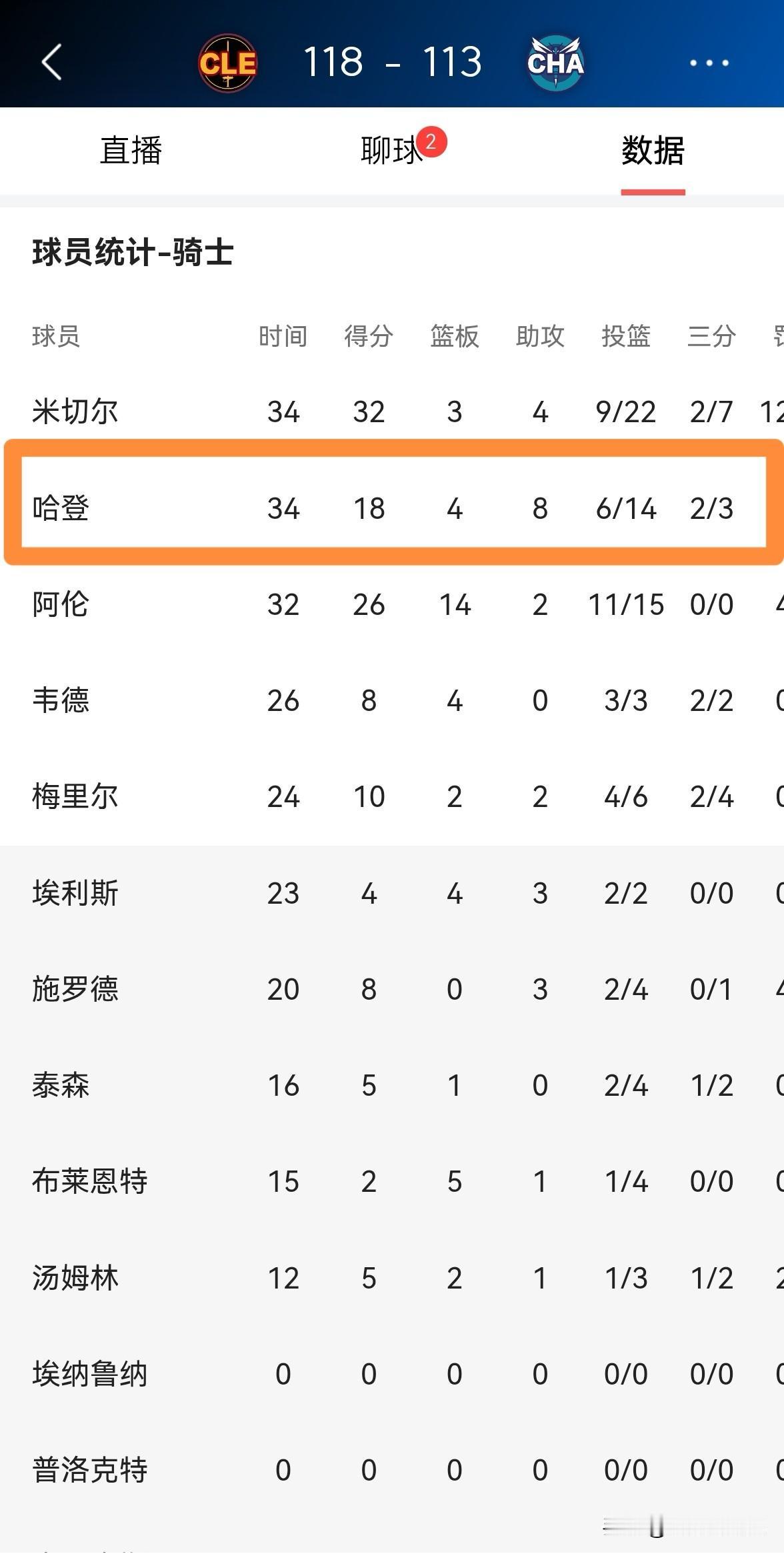 骑士巨星哈登真是太不同寻常了!在今天骑士客场以118:113力克黄蜂的比赛中,哈