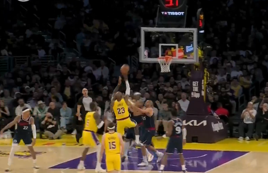 詹姆斯高难度金鸡独立漂移后仰还能投进,目前5中4得到11分